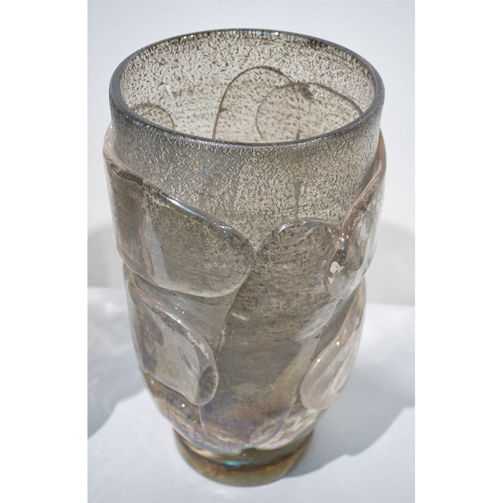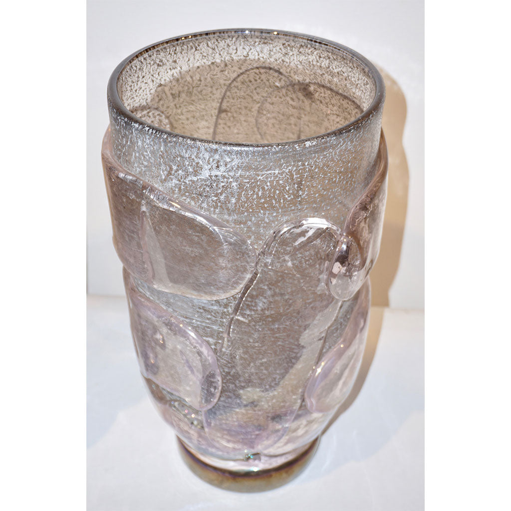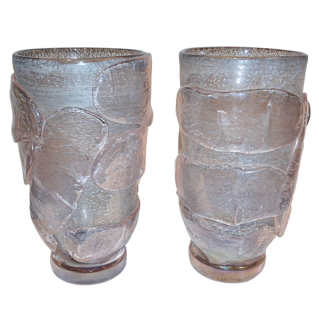 1990s Costantini Italian Pair of Silver Gray Pink Murano Alexandrite Glass Vases