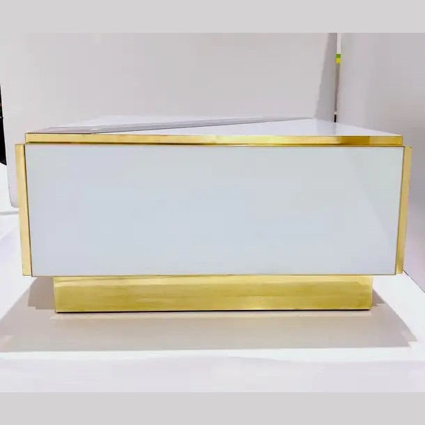 Custom Italian Art Design 2-Drawer Grey Blue Stripe White Glass Low Coffee Table