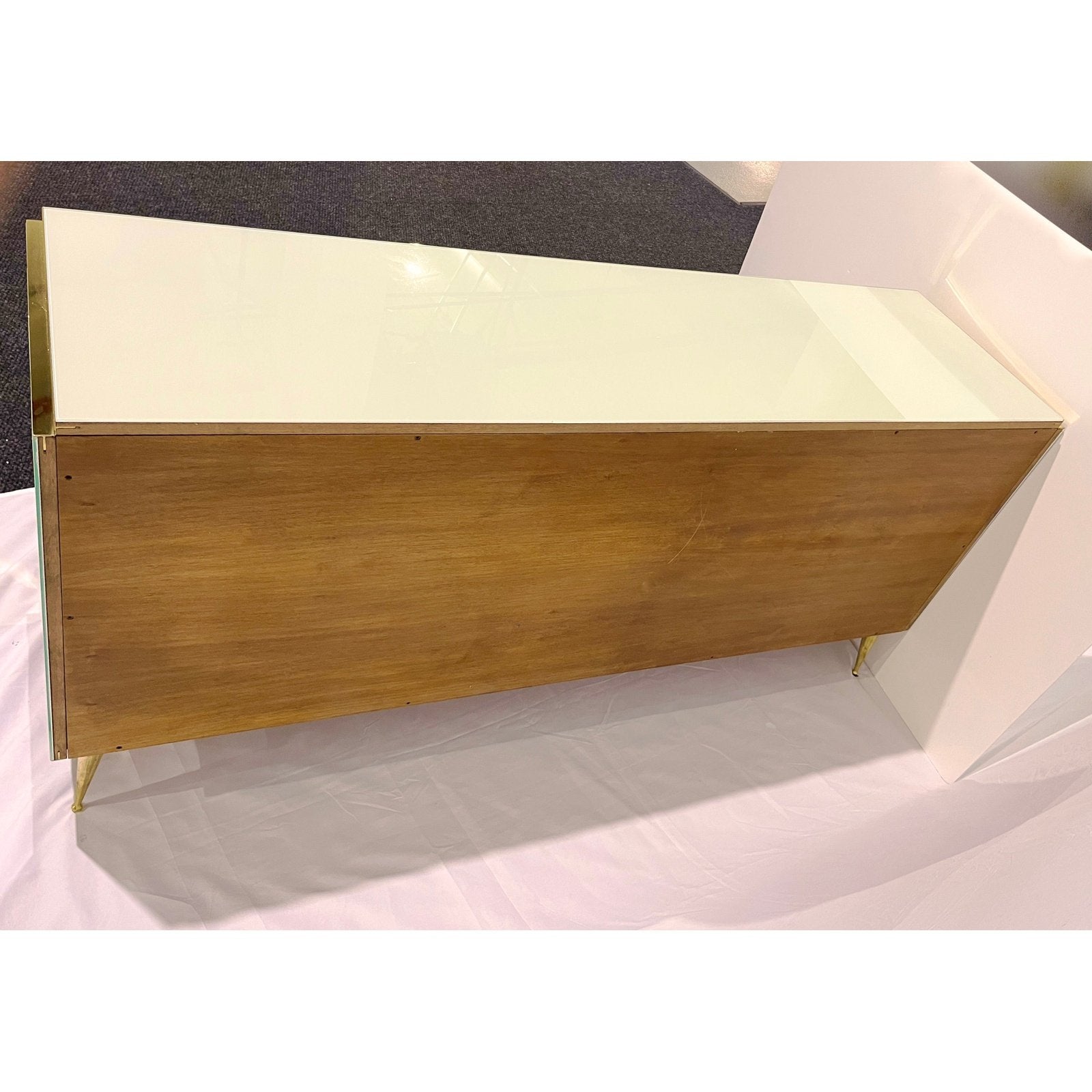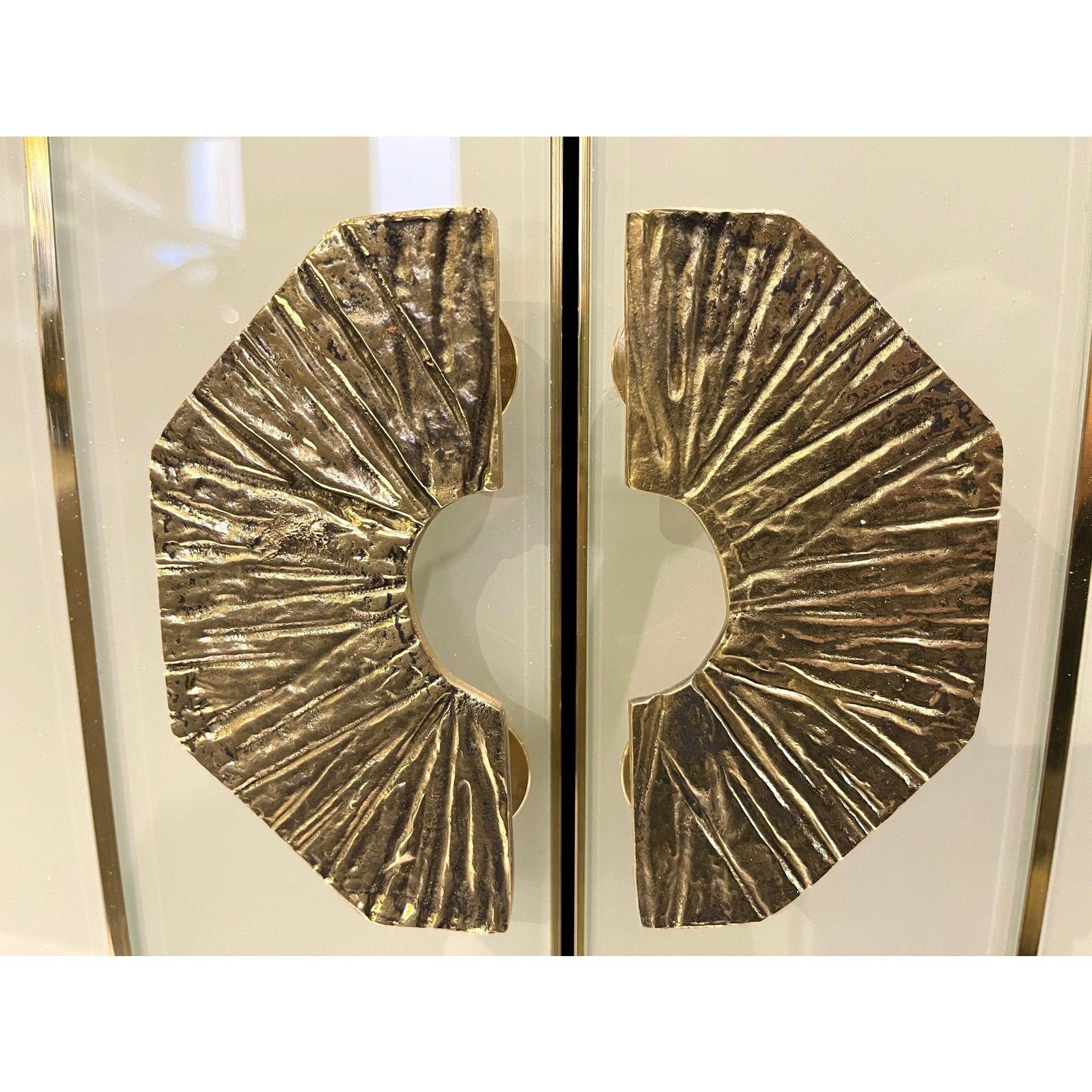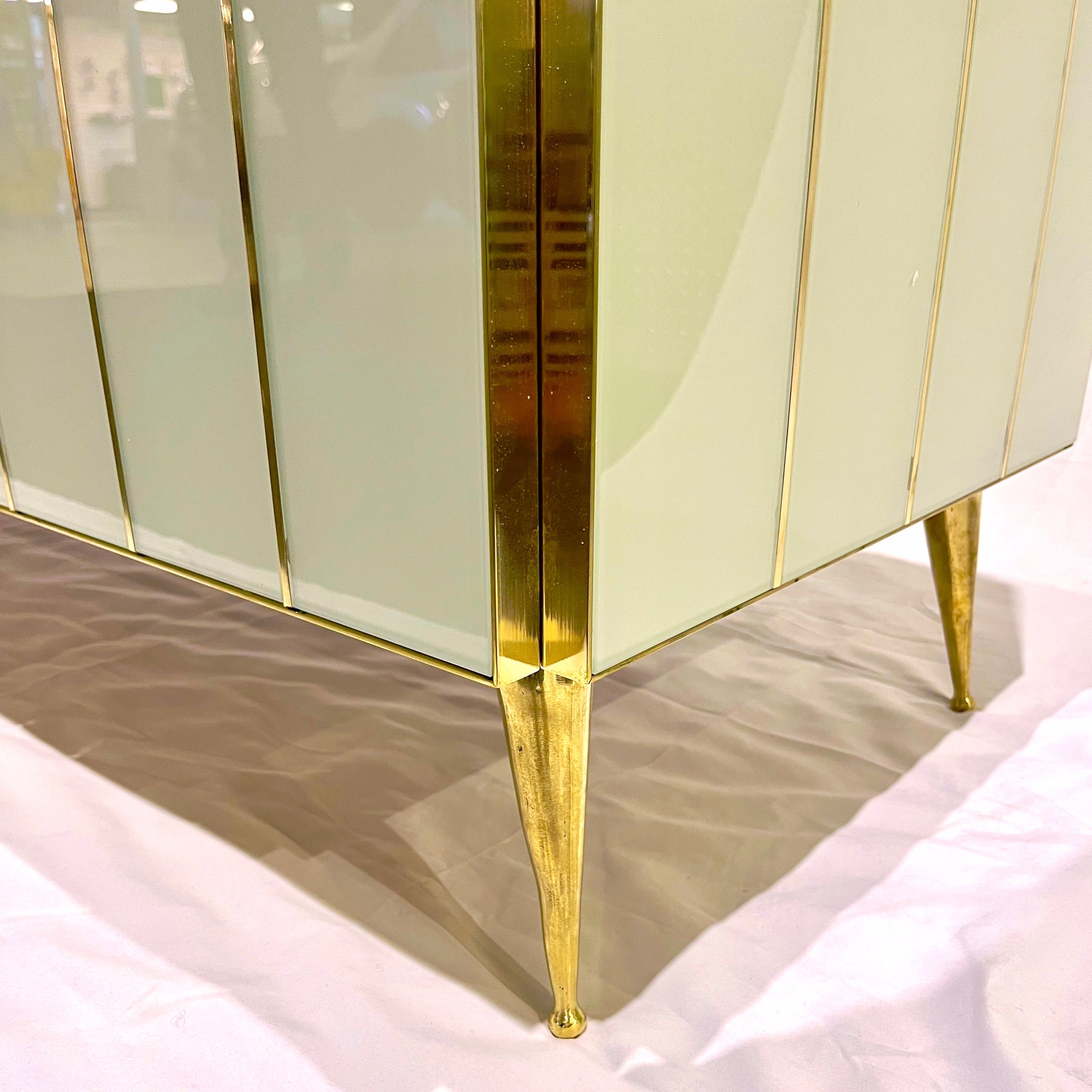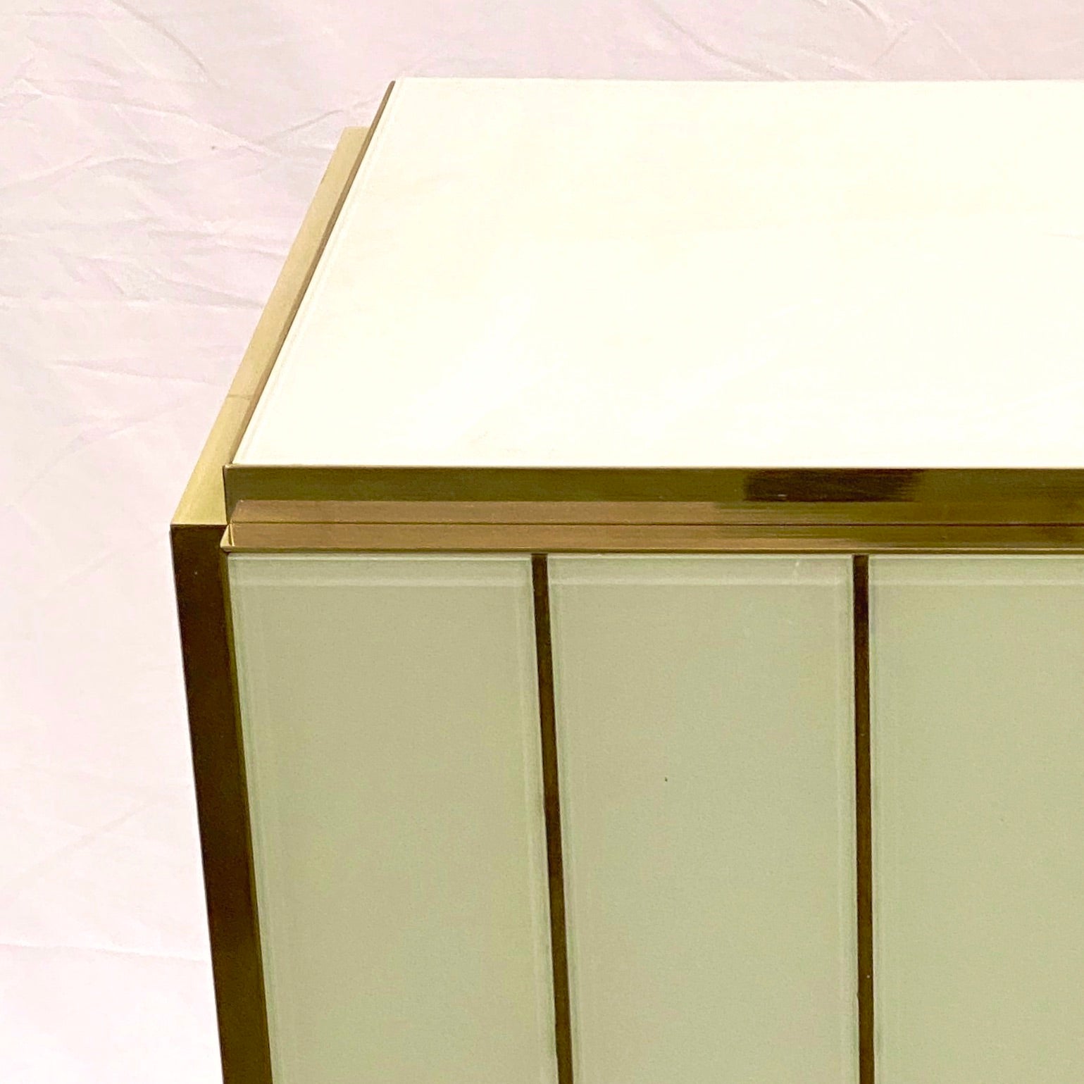 Customizable Italian Art Deco Style Ivory White Glass Brass Modern Cabinet