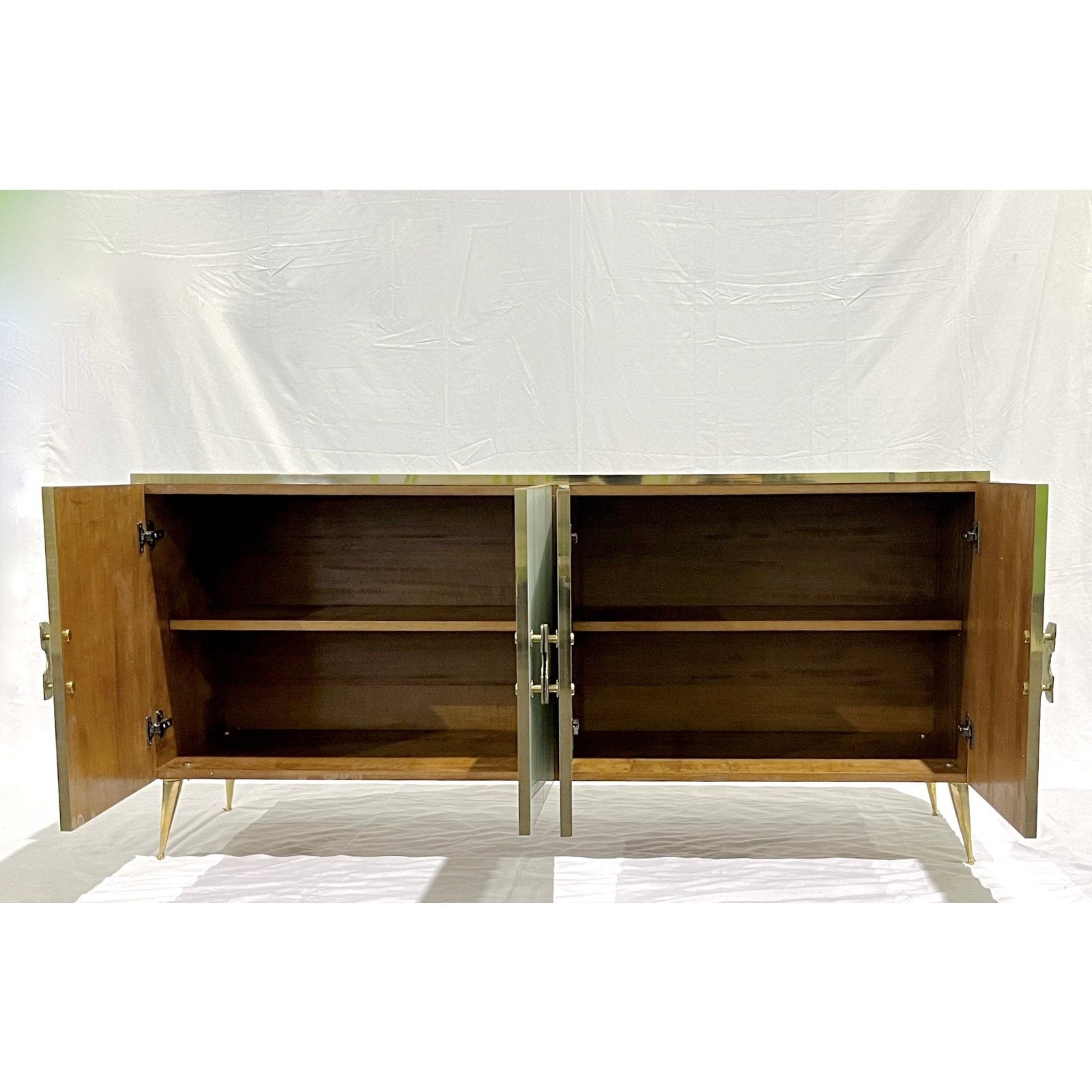 High quality of execution with geometric lines and great attention to details: veneered wood interior, the whole body and doors exquisitely edged with innovative brass profiles in relief that modernize the design.
