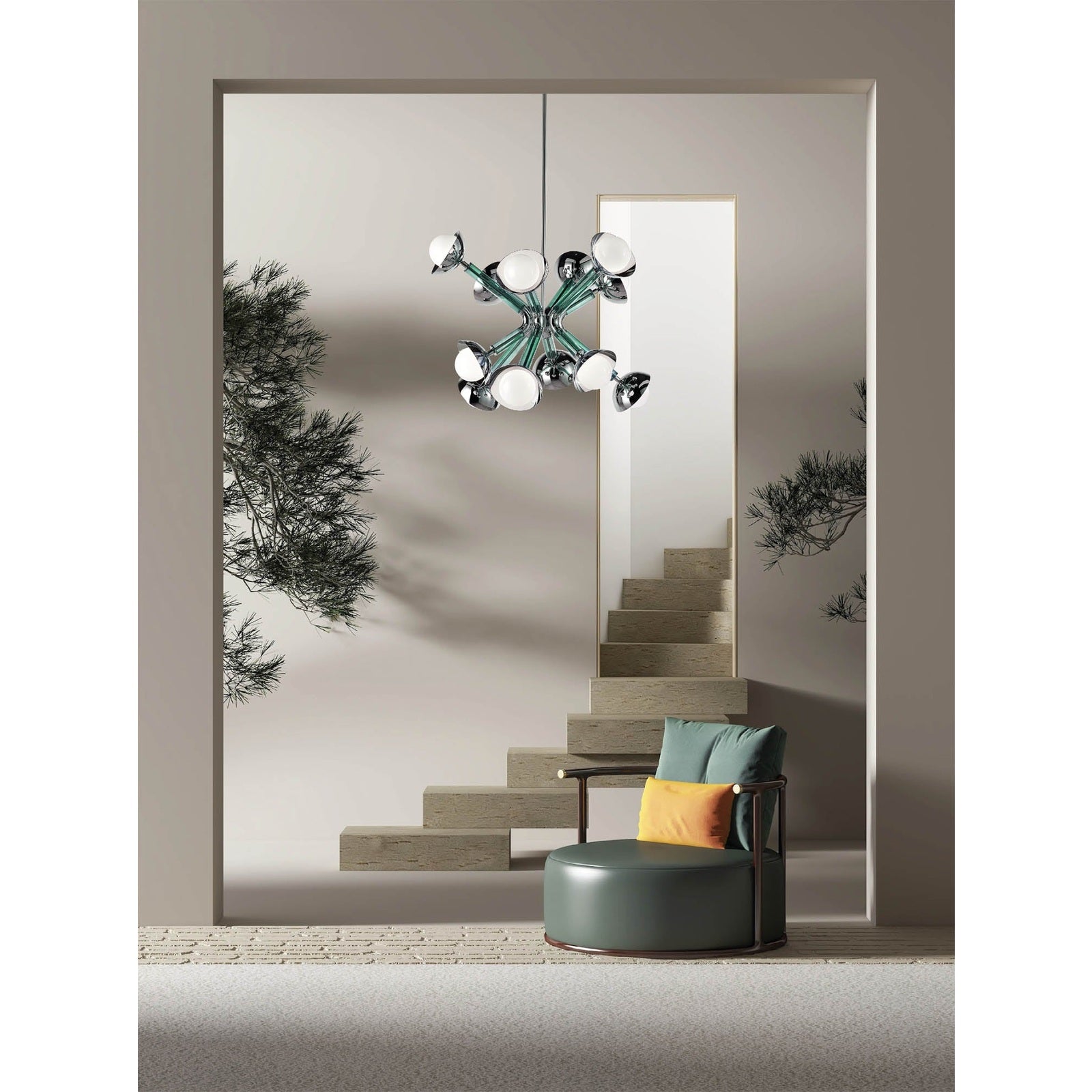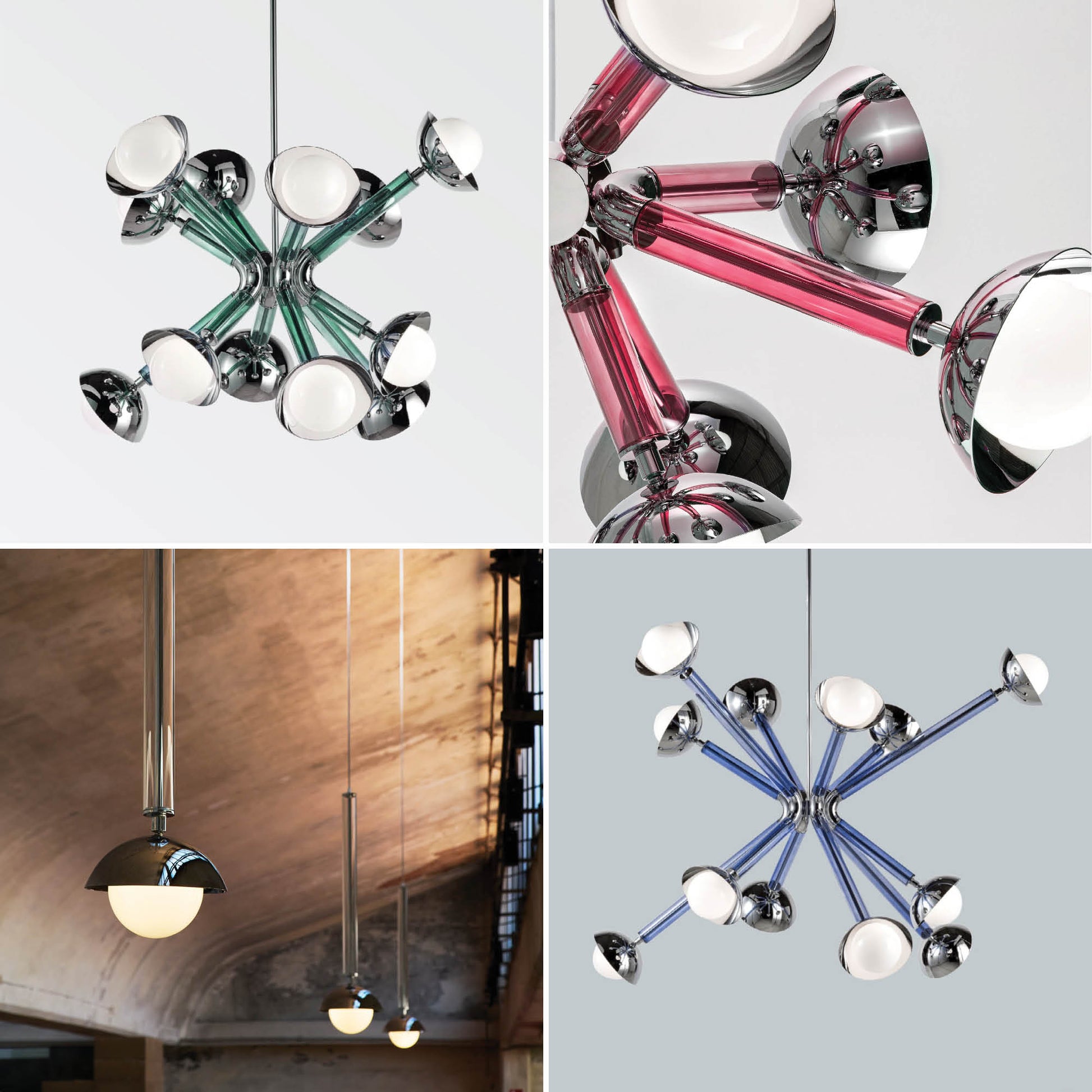 Options for finishes and glass colors, as well as for an 8-light option in the same size LU5447242330992 or a larger 12-light LU5447242709012. In the same collection, are present pendants and sconces.