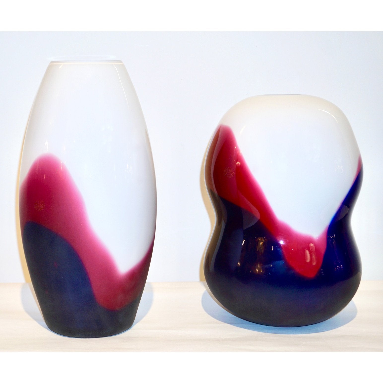 Formia 1980 Italian Vintage Purple Blue White Murano Glass Organic Design Vase