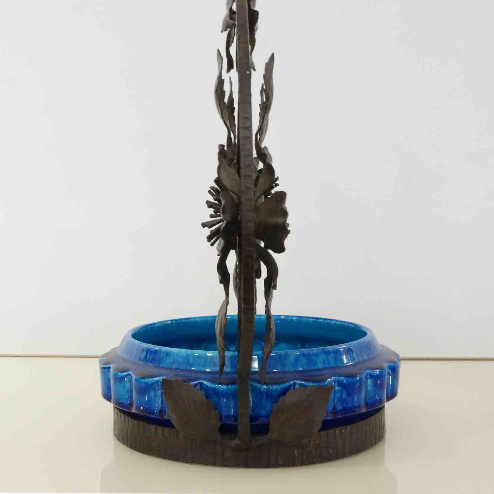 French Art Nouveau Paul Milet Sevres Ceramic Flower Wrought Iron Turquoise Bowl