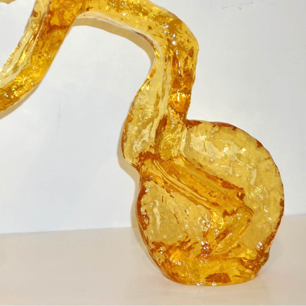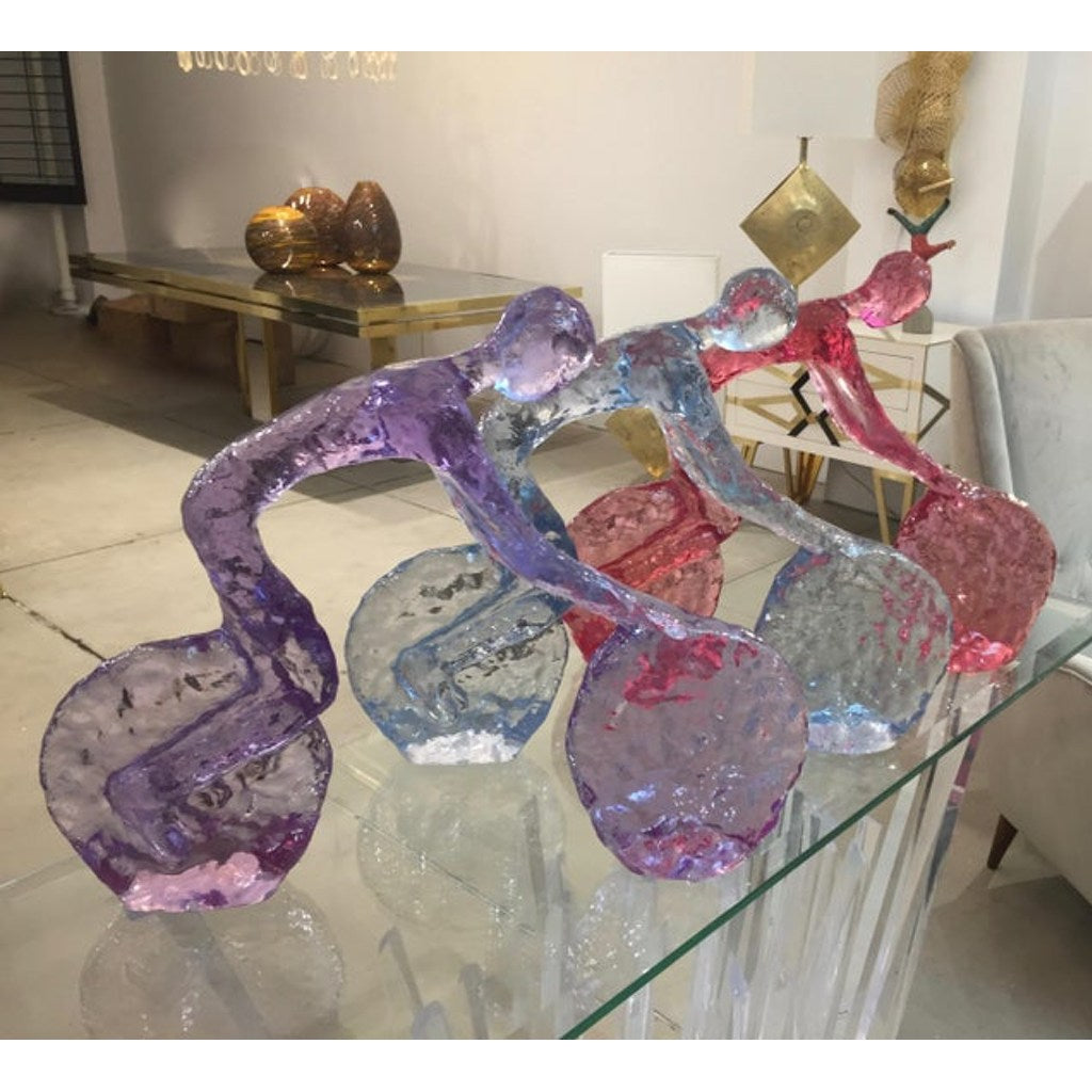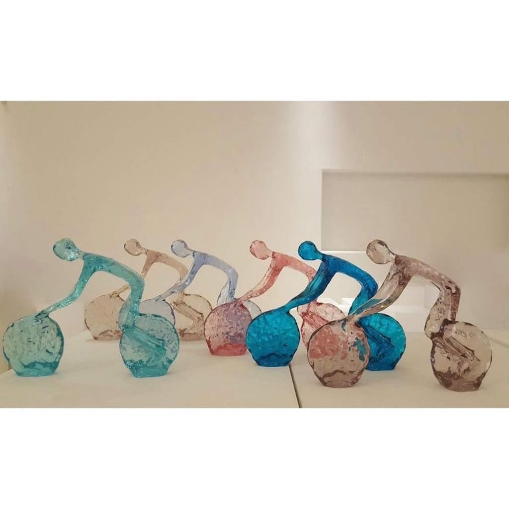 Are you passionate about cycling and love the sport? This is a perfect gift or trophy for any enthusiast or ideal decor for children's room. Large organic Minimalist biker on bicycle, made in USA in high-quality lucent yellow color acrylic, with a sophisticated textured finish that makes it look like glasswork of Art, exclusively handcrafted and curated by a small Art Studio directed by an Israeli artist.