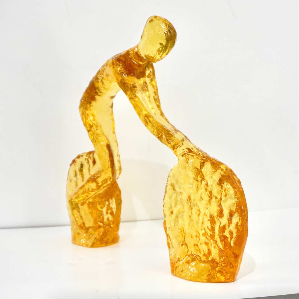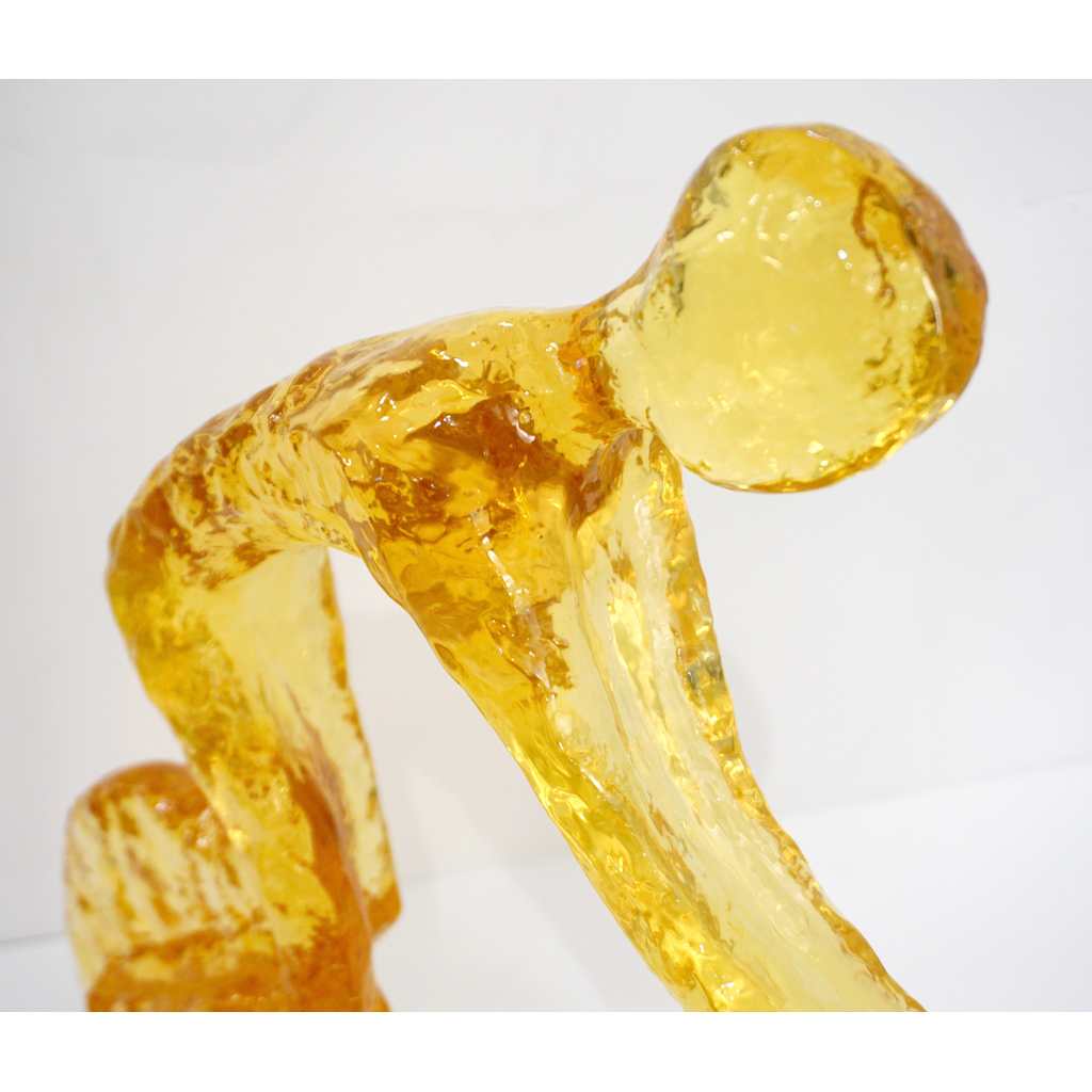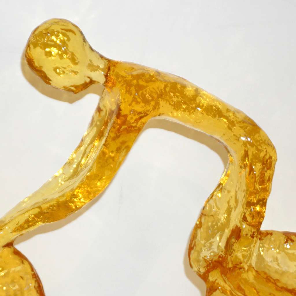 Contemporary Golden Honey Yellow Modern Lucite Sculpture of Minimalist Cyclist