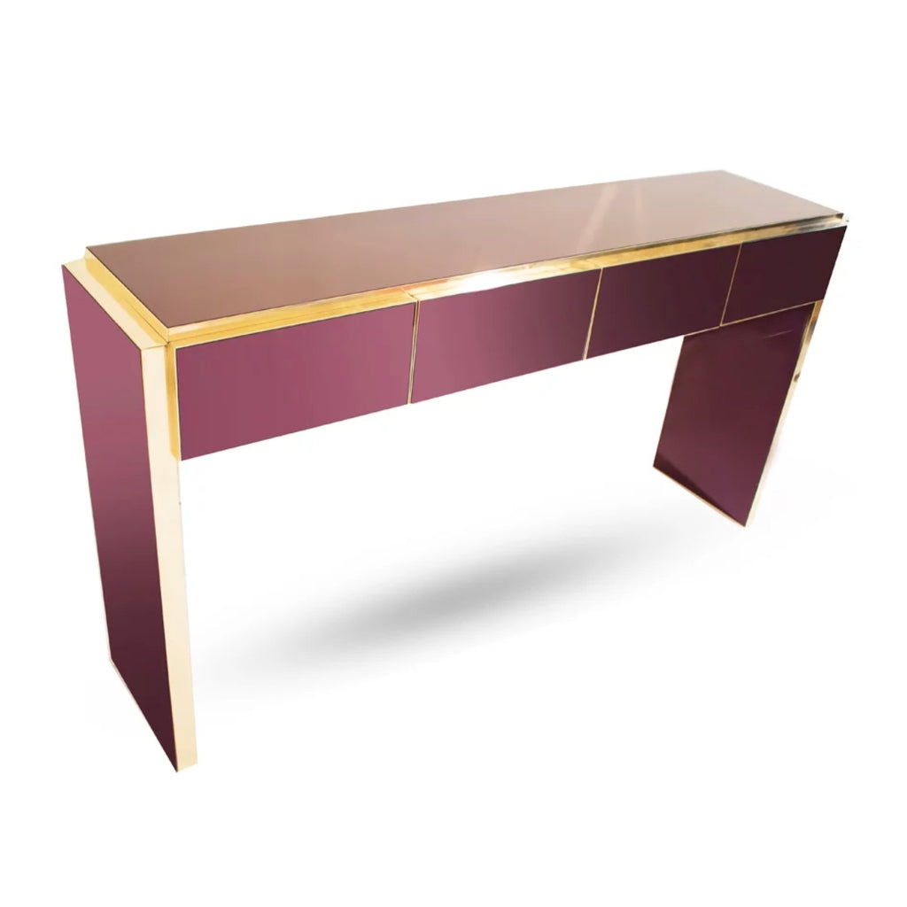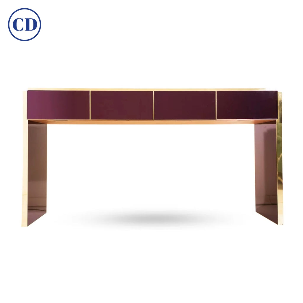 Bespoke Italian Design 4-Drawer Purple & Brass Console Center Table/Sideboard