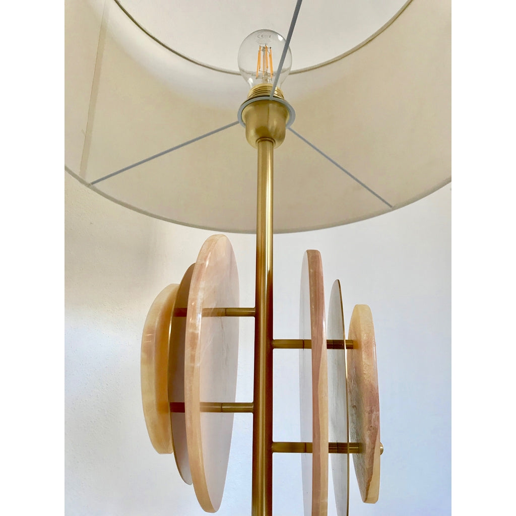 Bespoke Italian Organic Modern Amber Onyx Satin Brass Satellite Table Lamp