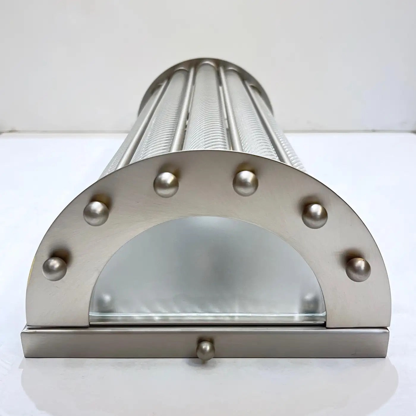 Italian Art Deco Design Pair Crystal Murano Glass Half Moon Satin Nickel Sconces