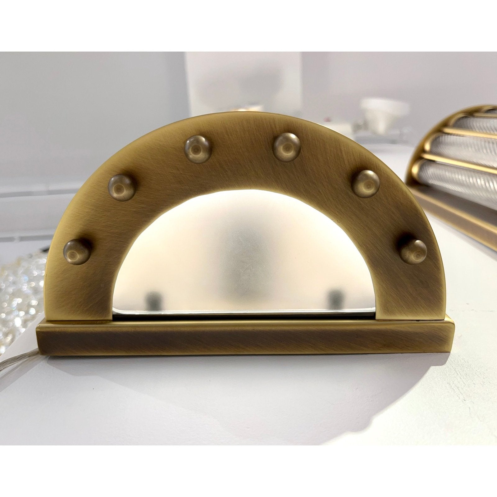 Contemporary customizable Italian Art Deco Design pair of semi-circular wall lights, entirely handcrafted in Italy, with an antique bronze finish. The nicely scalloped airy brass structure supports crystal clear Murano glass rods worked with the sophisticated technique Torchon, handcrafted twisted glass, that not only makes the fixture more precious but multiplies the light reflections. High quality of construction and details with a brass decorative curved band to enclose the elegant frosted Murano glass rods.