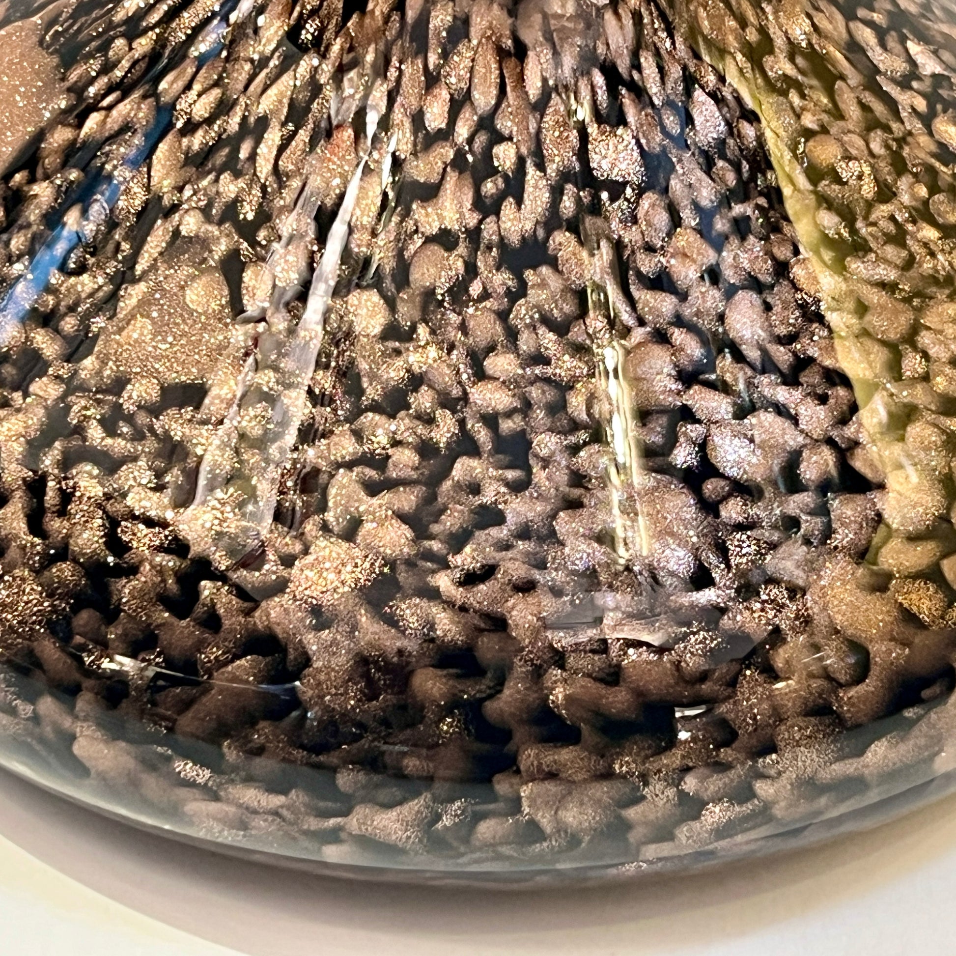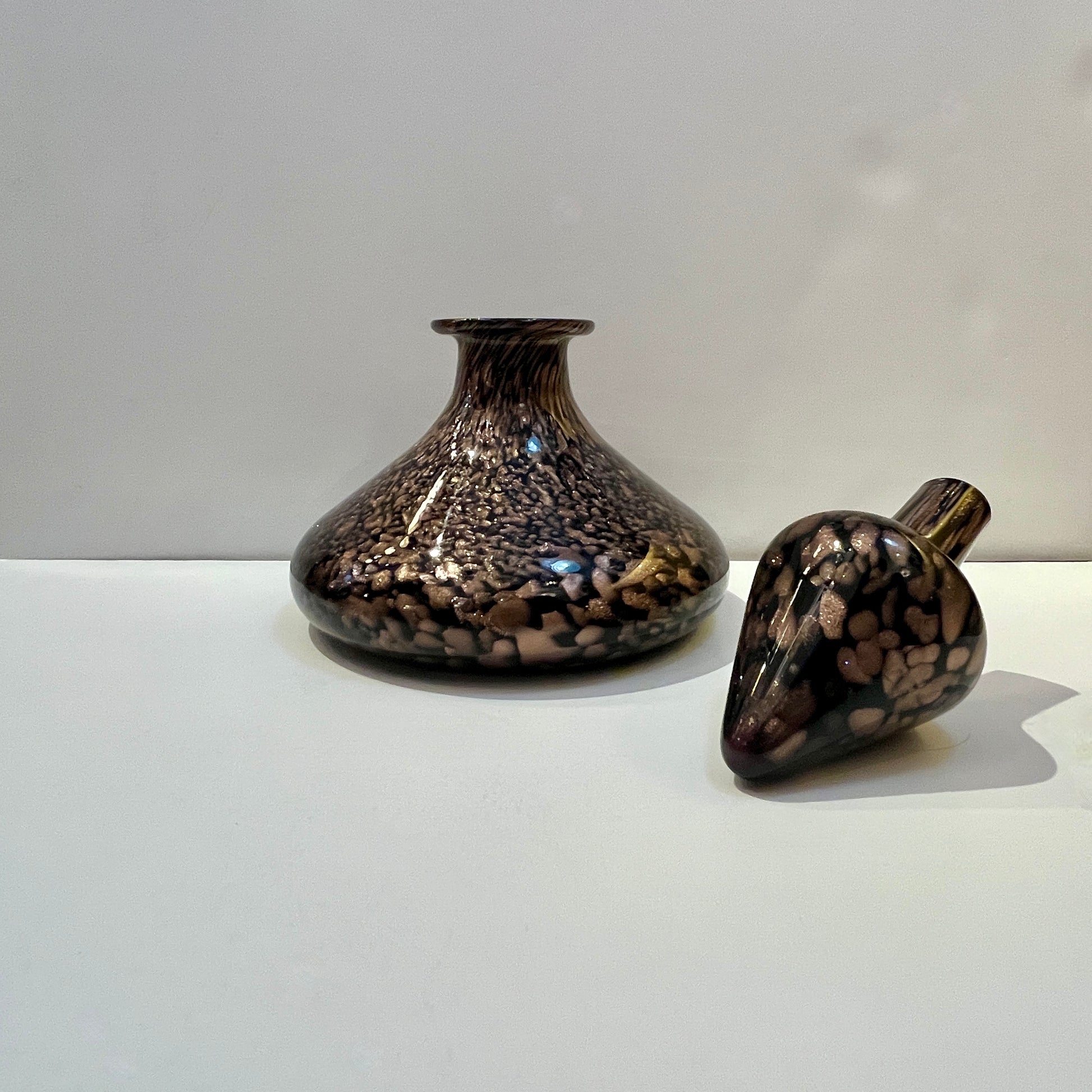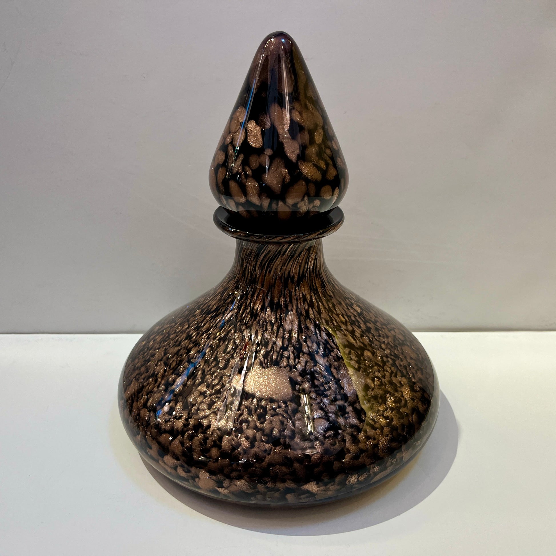 Italian Aventurine Vintage Murano Glass Black Copper Large Bottle with Stopper