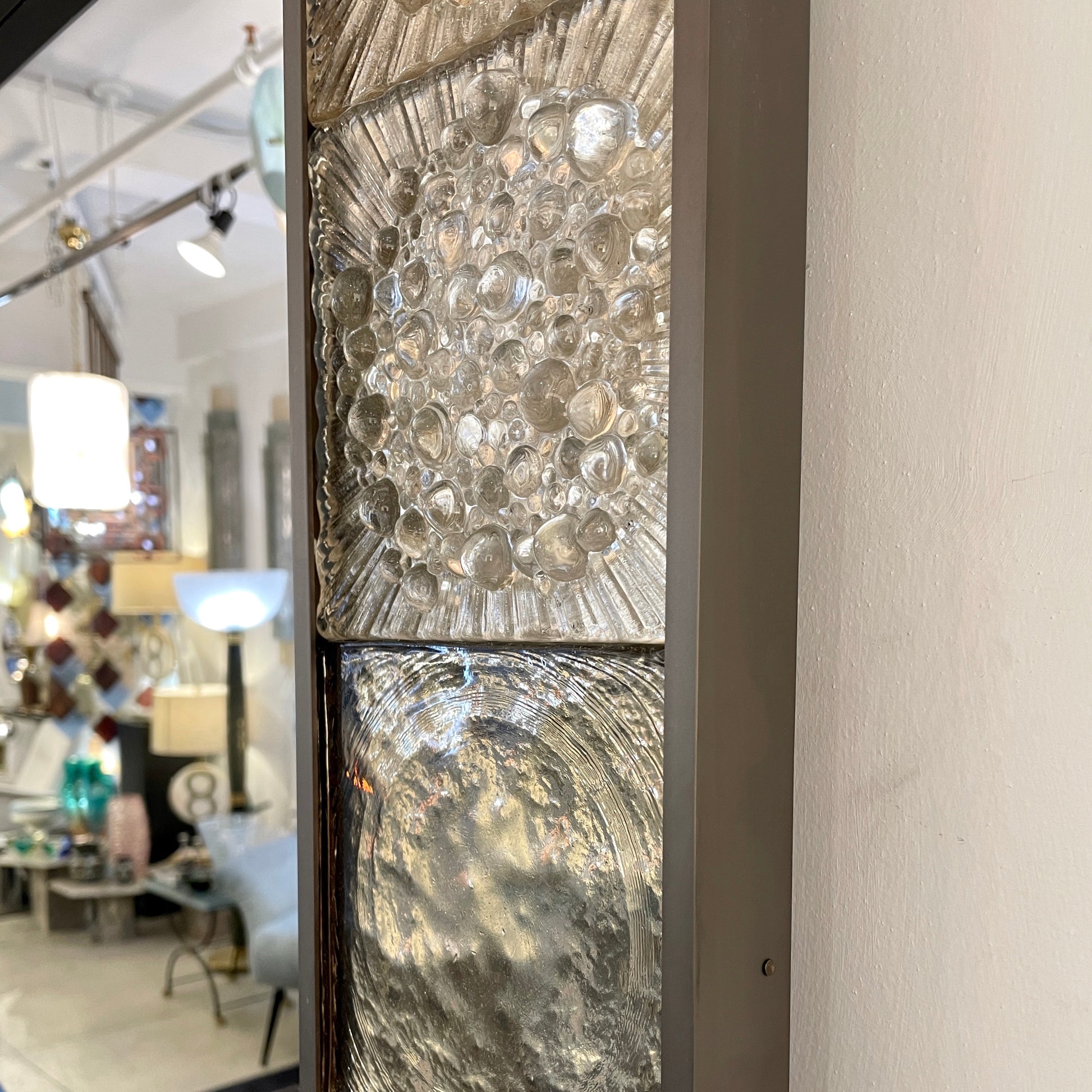 Customizable Italian Smoked Silver Murano Glass Geometric Gun Metal Tile Mirror