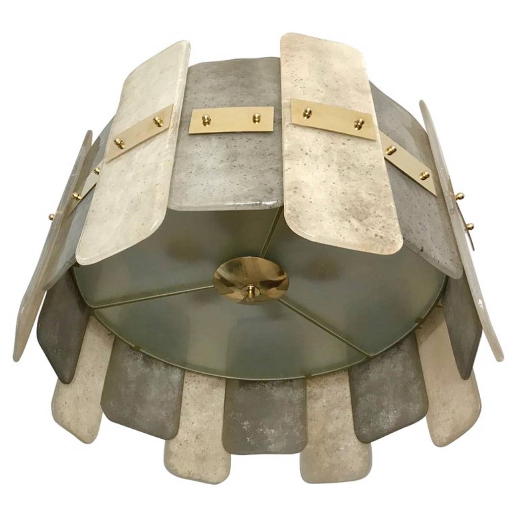 Italian Custom Aquamarine Cobalt Blue Texture Murano Glass Chandelier/Flushmount
