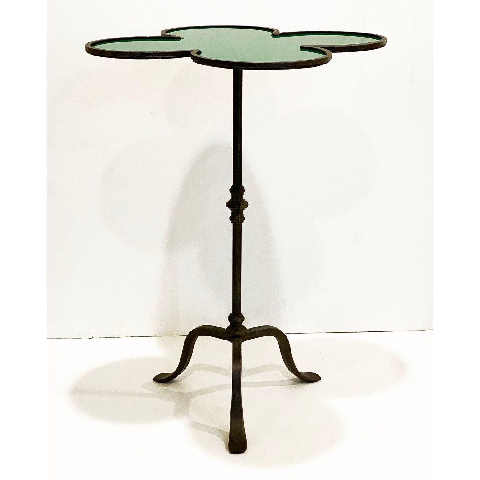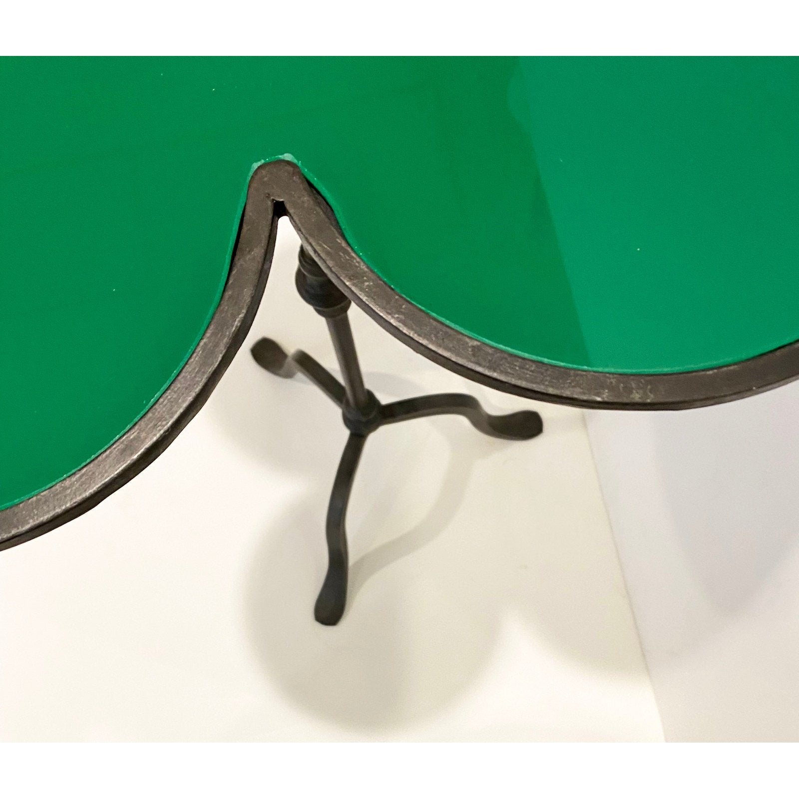 Italian Twisted Cast Iron Customizable Green Glass Clover Side Coffee Table