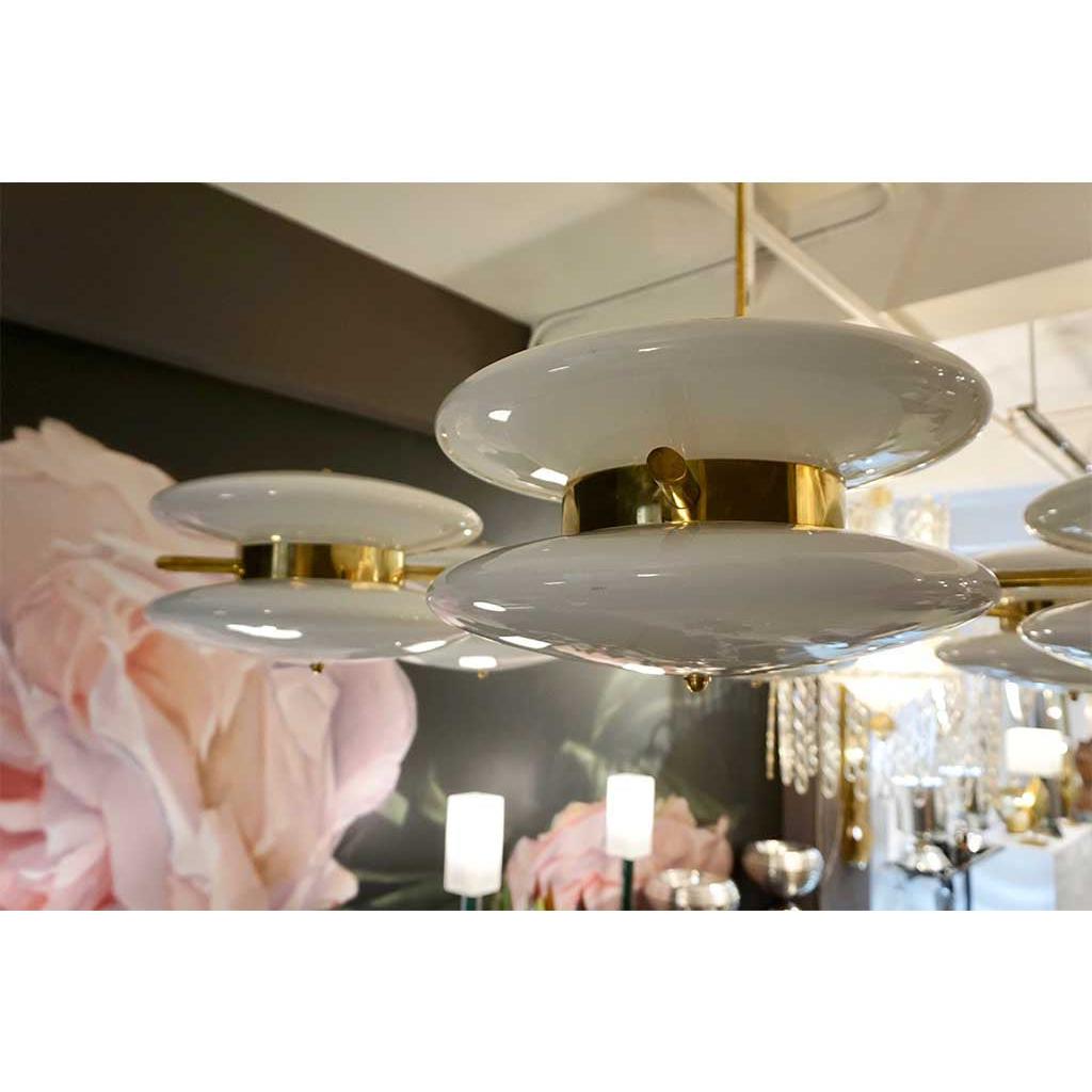 Contemporary Italian Minimalist Brass and White Murano Glass Globe Chandelier