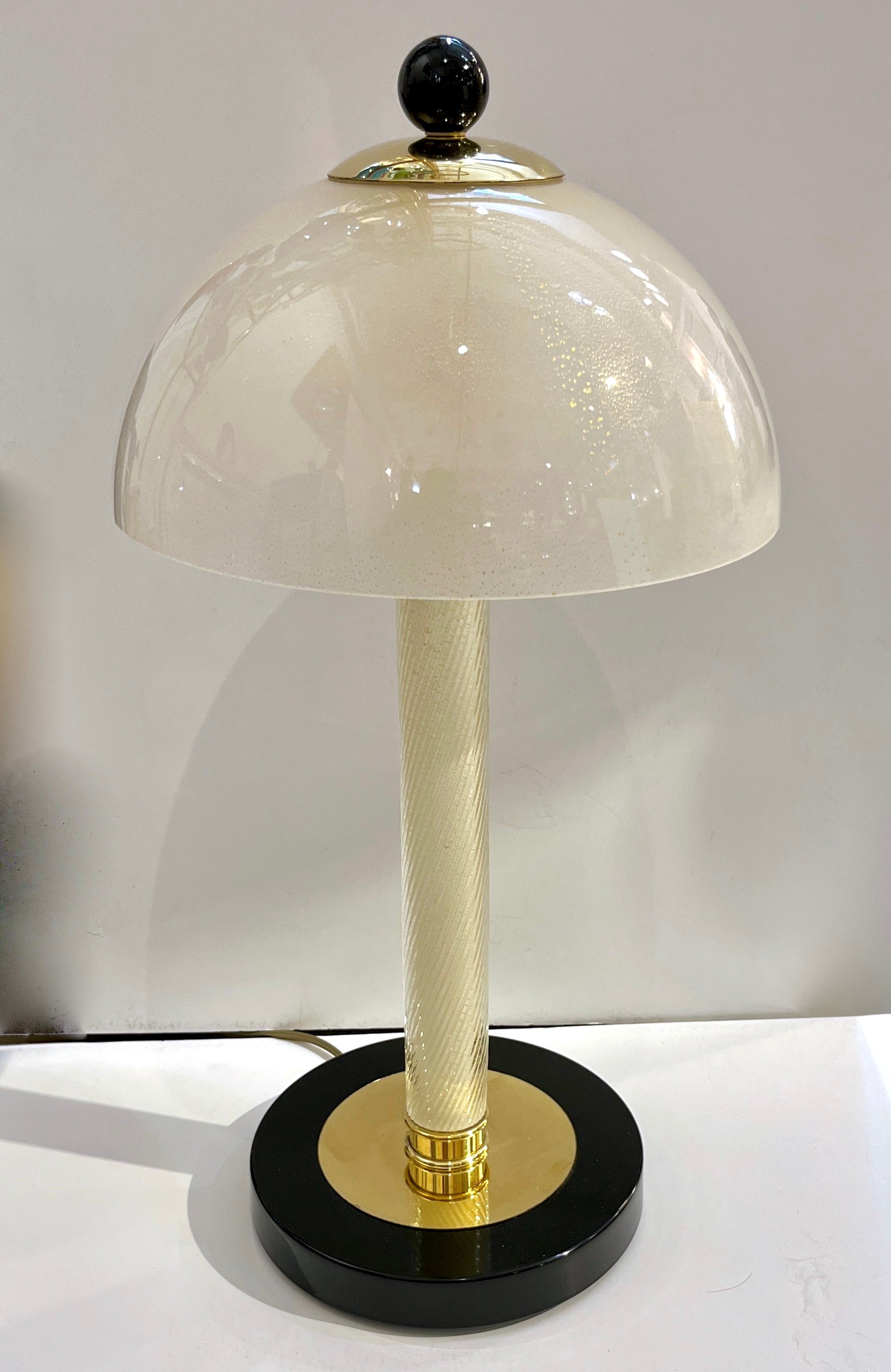 Italian Modern Pair of Art Deco Design Black White Gold Murano Glass Dome Lamps