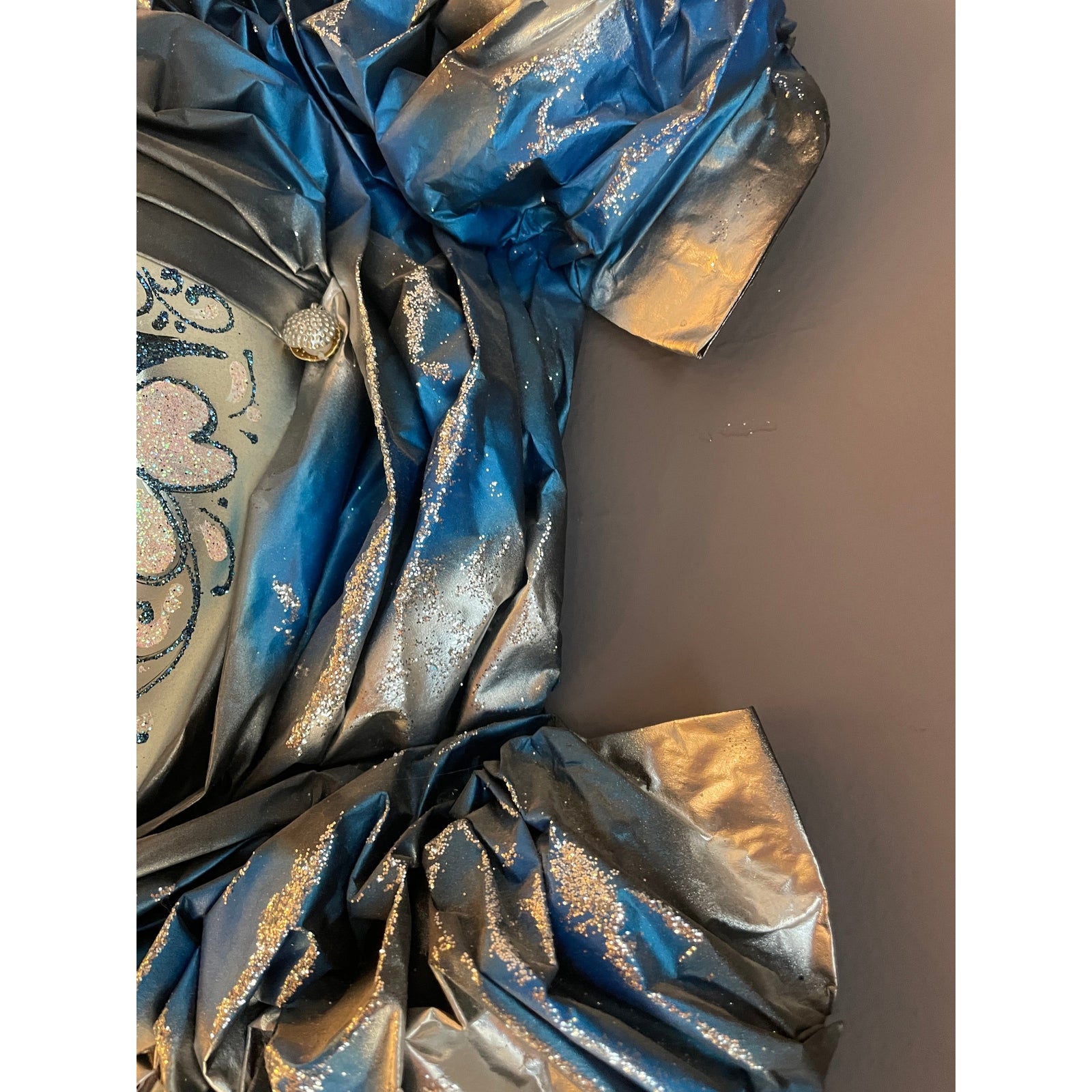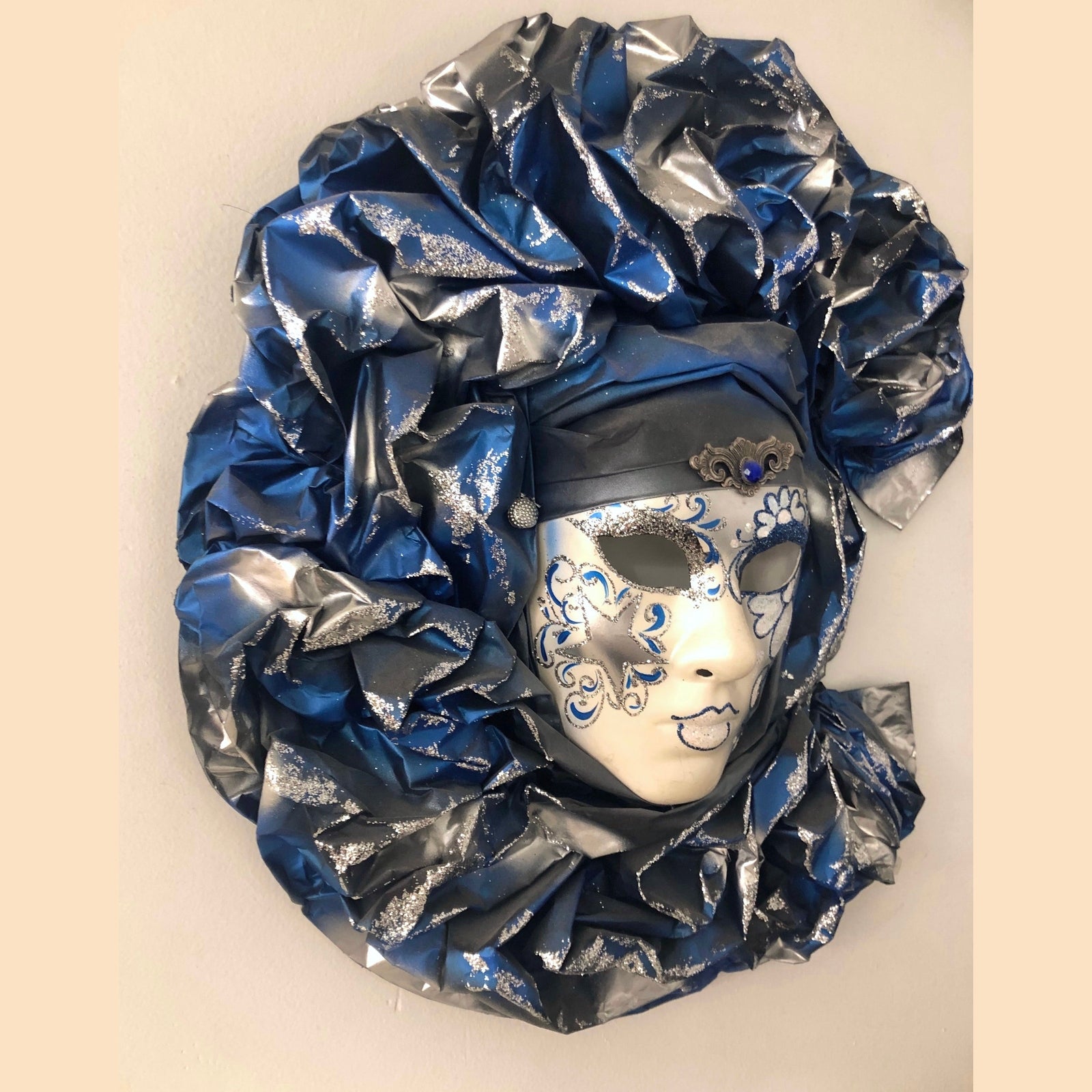 Italian Modern Venetian Carnival Handmade Silver White Blue Mask Flower Pleat