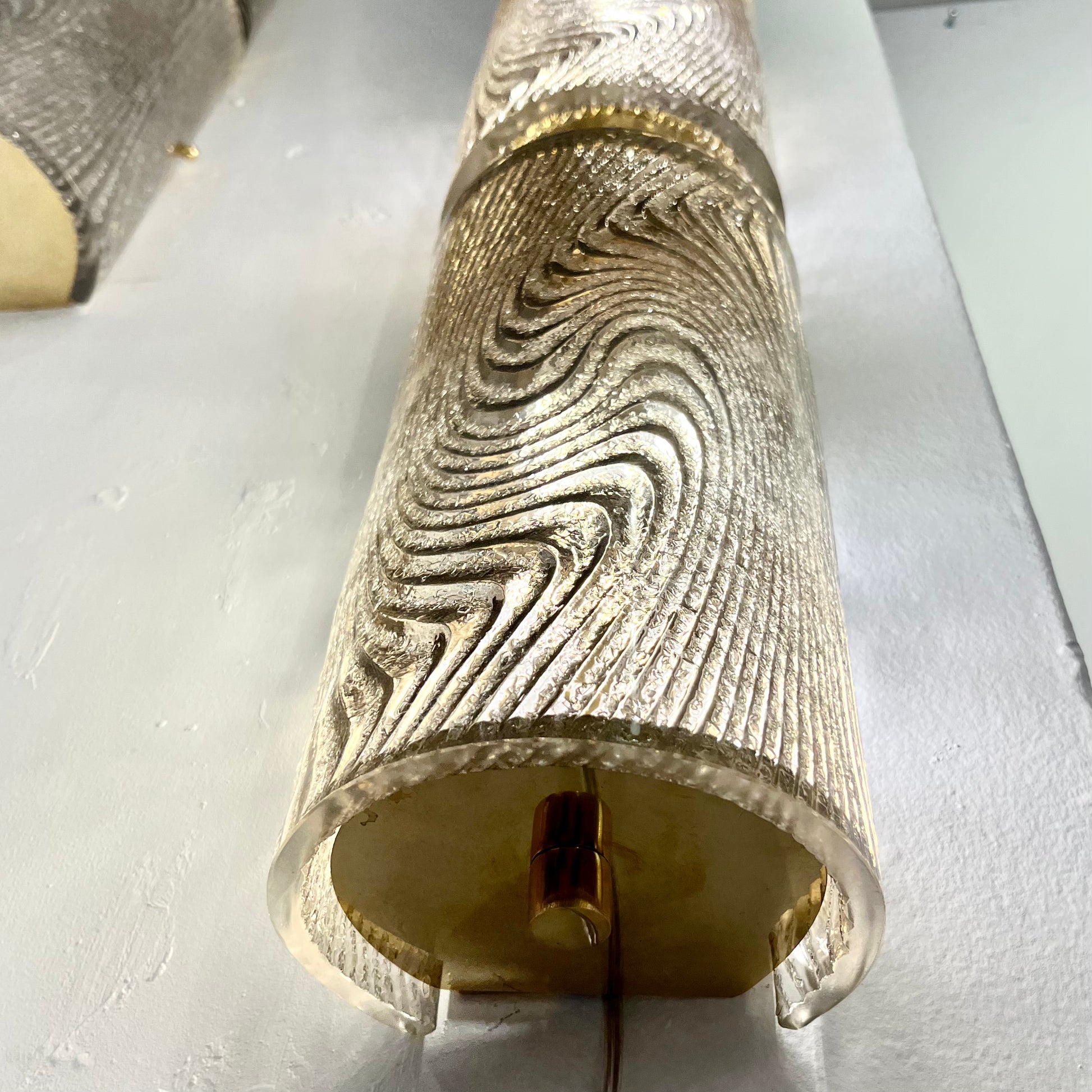 Modern Italian Pair of Smoked Frosted Murano Glass & Brass Wall / Ceiling Lights