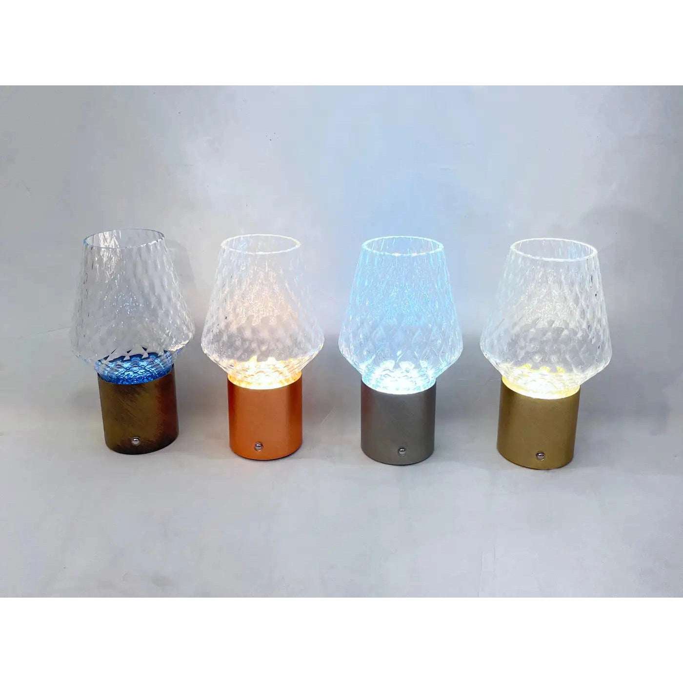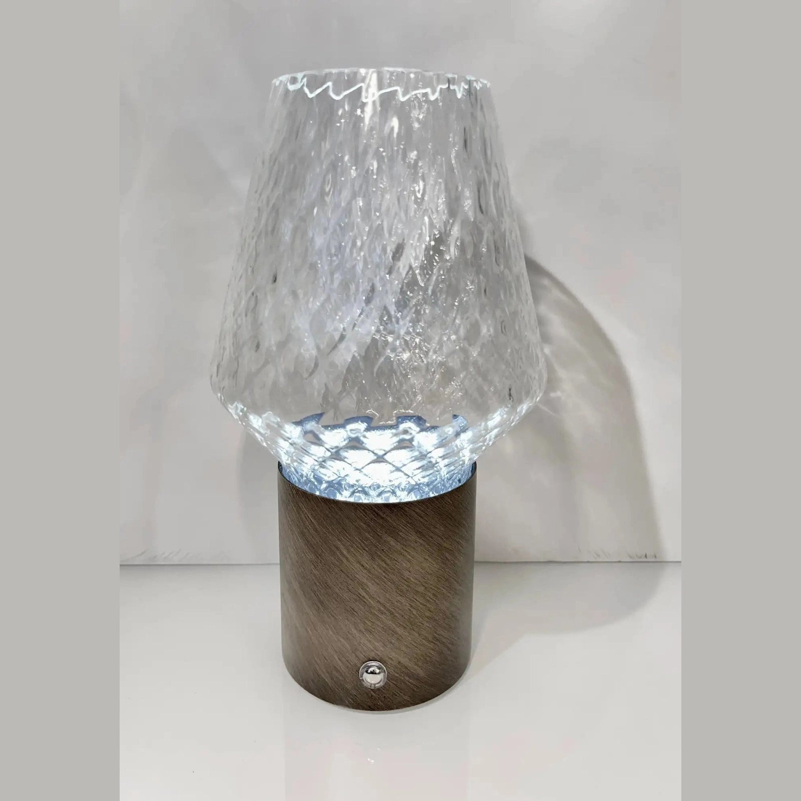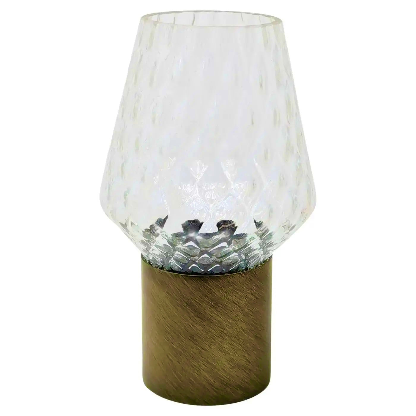 Italian Wireless Bronze Satin Brass Crystal Glass Portable Cone Table Lamp/Vase