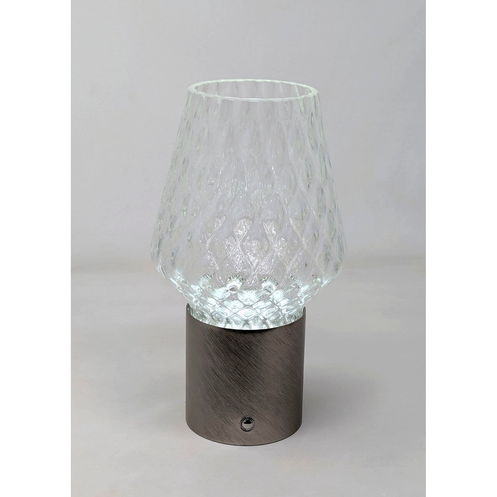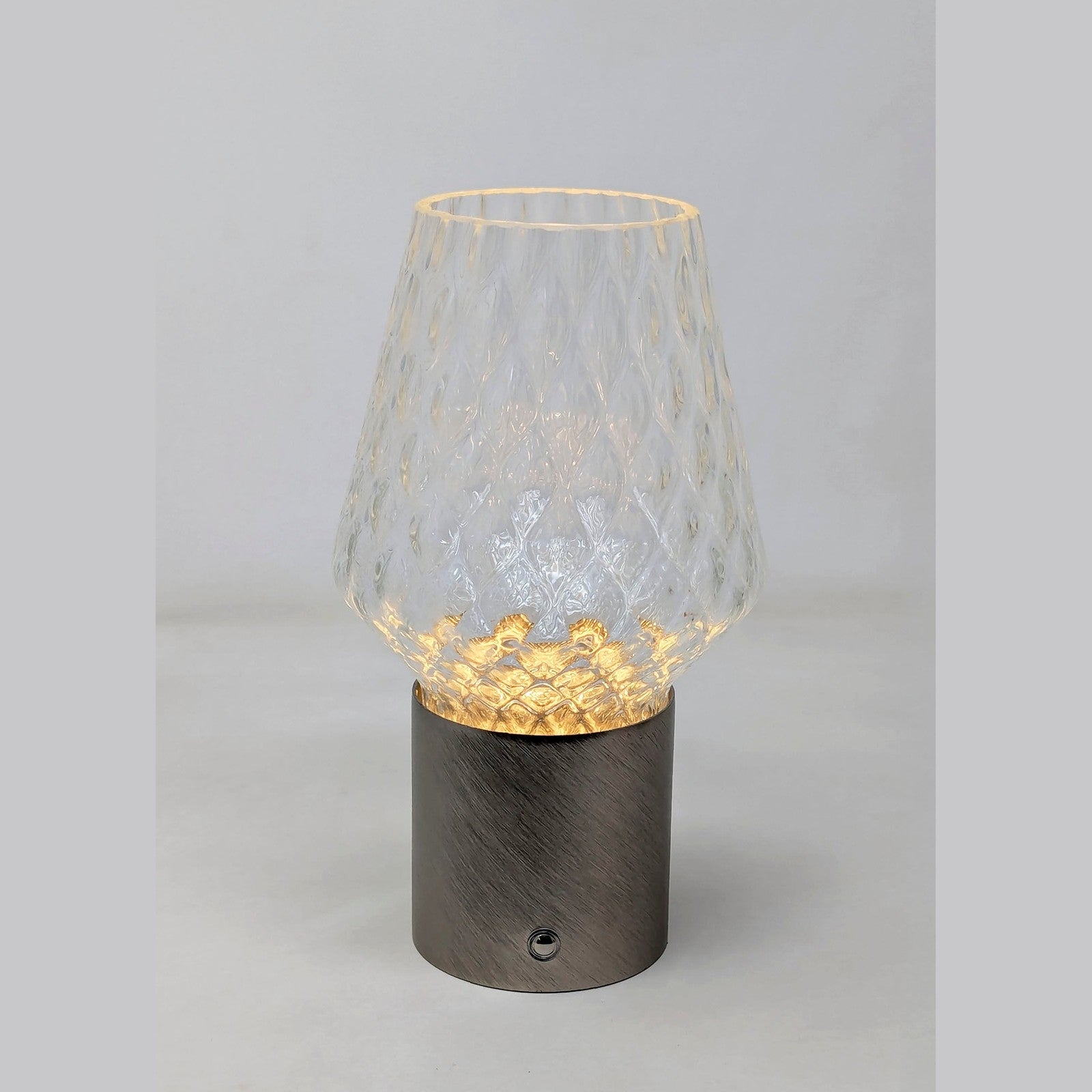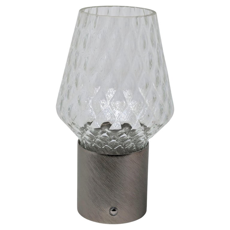 Italian Wireless Brushed Nickel Crystal Glass Portable Mini Table Lamp/Lit Vase