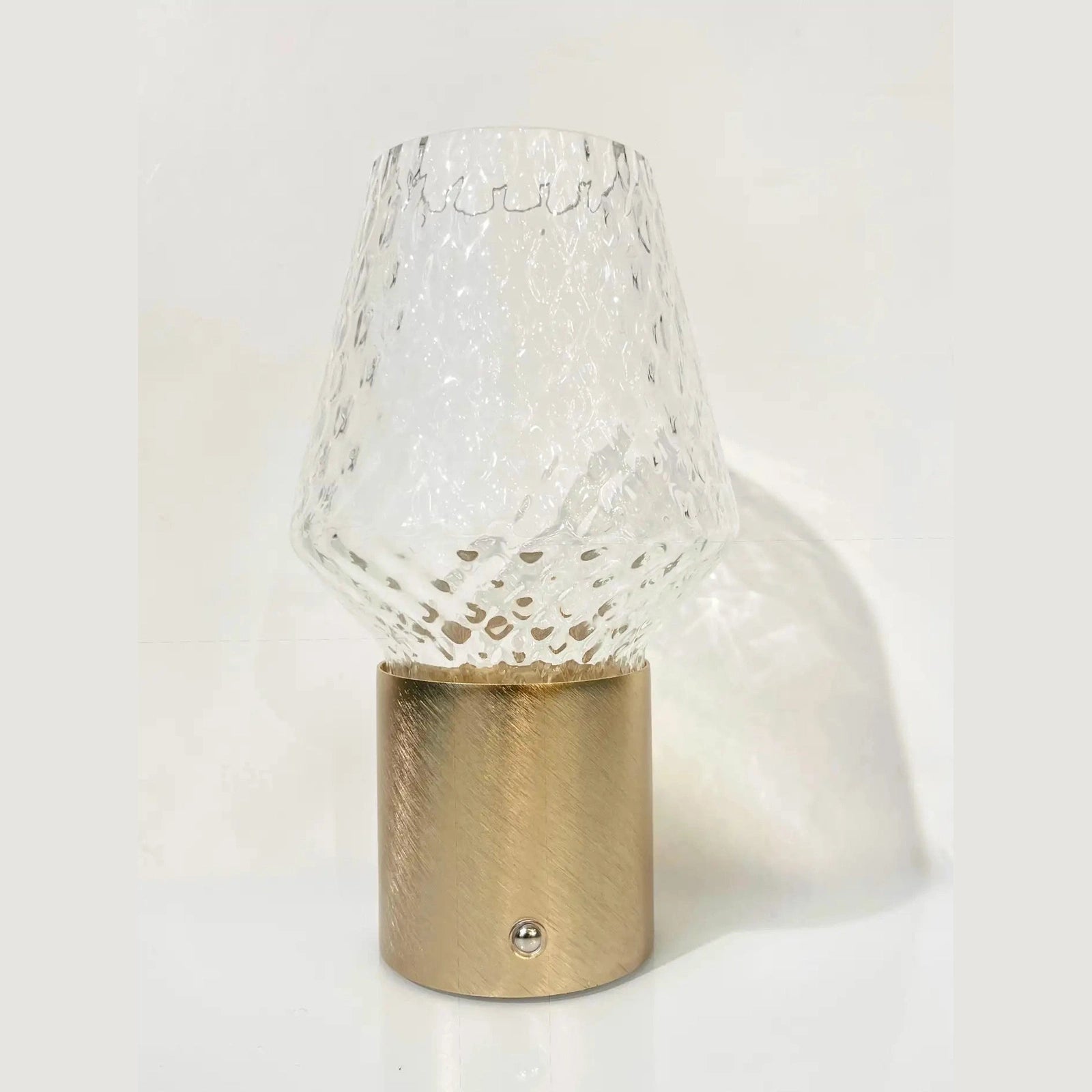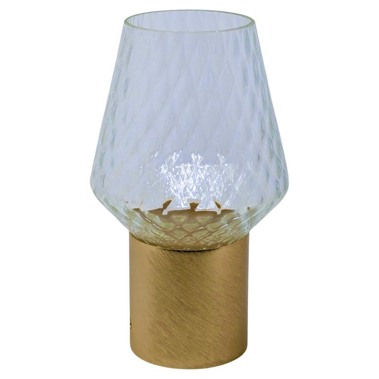 Italian Wireless Crystal Glass Portable Brushed Gold Brass Cone Table Lamp/Vase