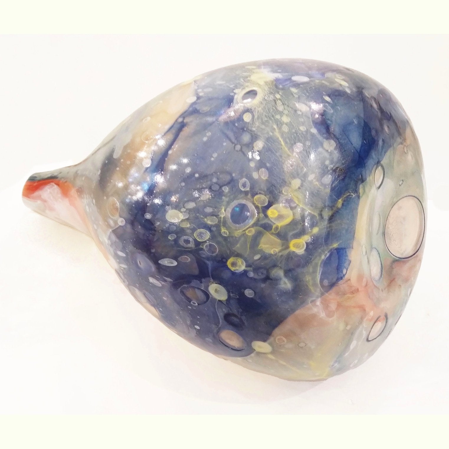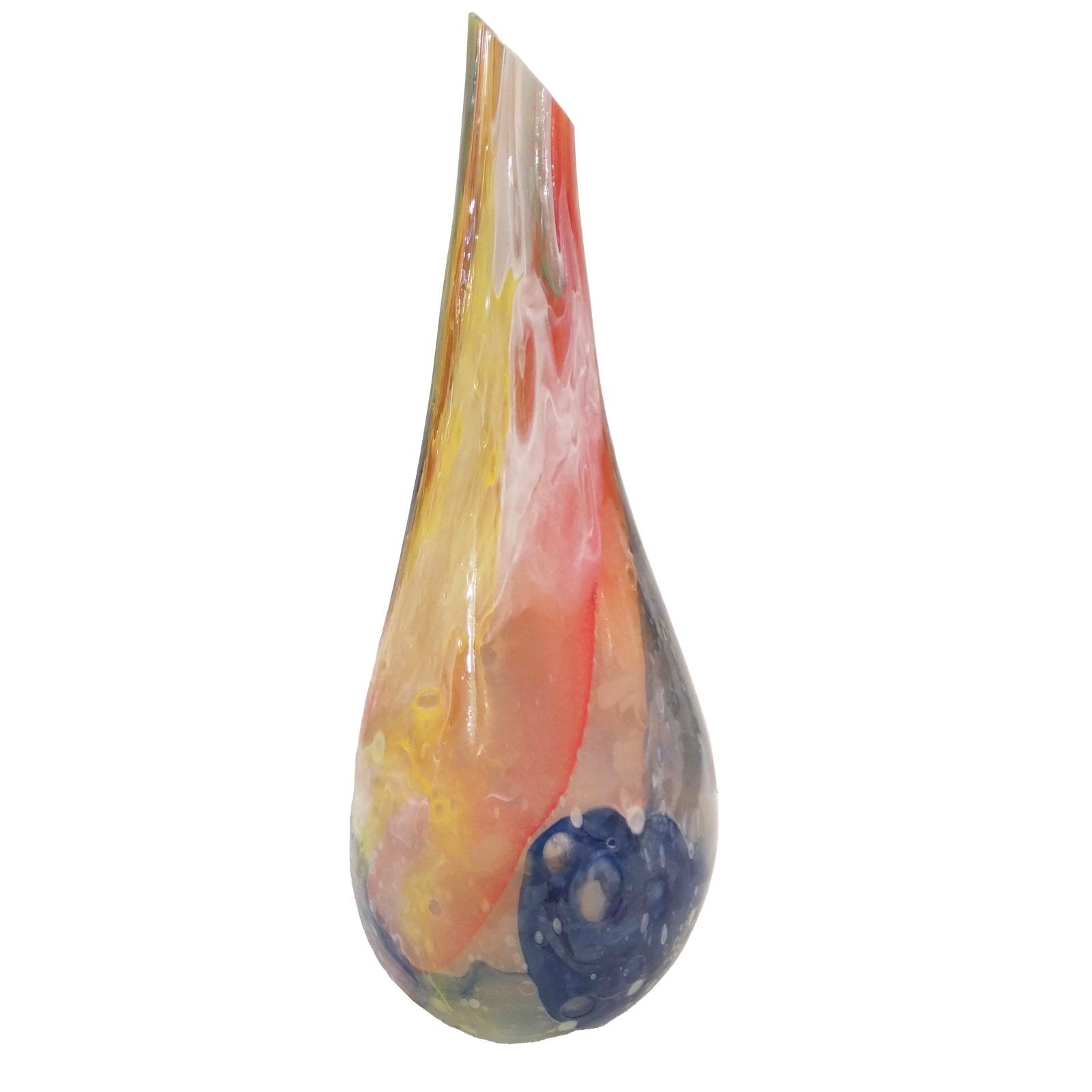 Italian Yellow Red Blue Silver Overlaid Crystal Murano Glass Sculpture Vase