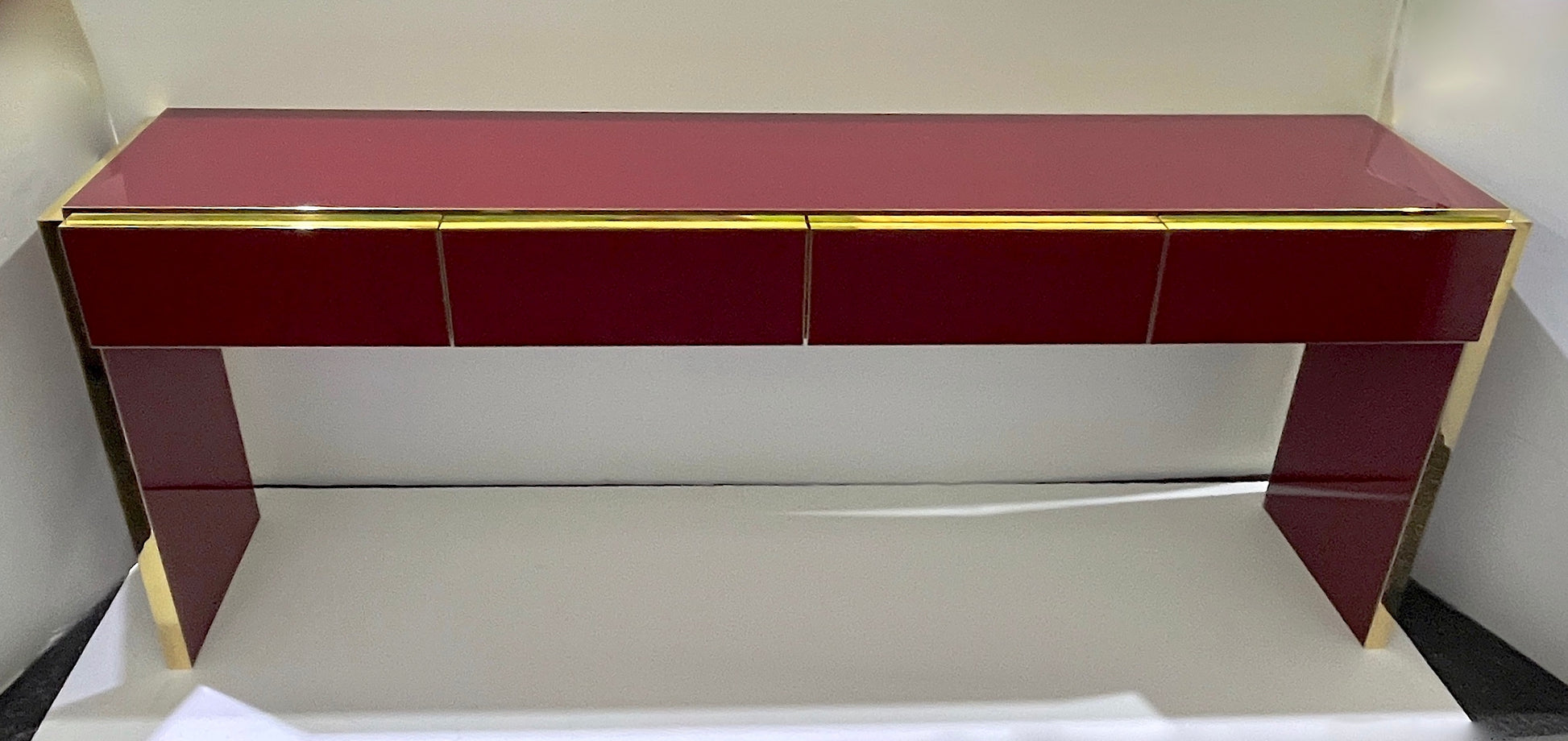 Bespoke Italian 4 Drawers Burgundy Wine & Brass Console Long Table/Sideboard