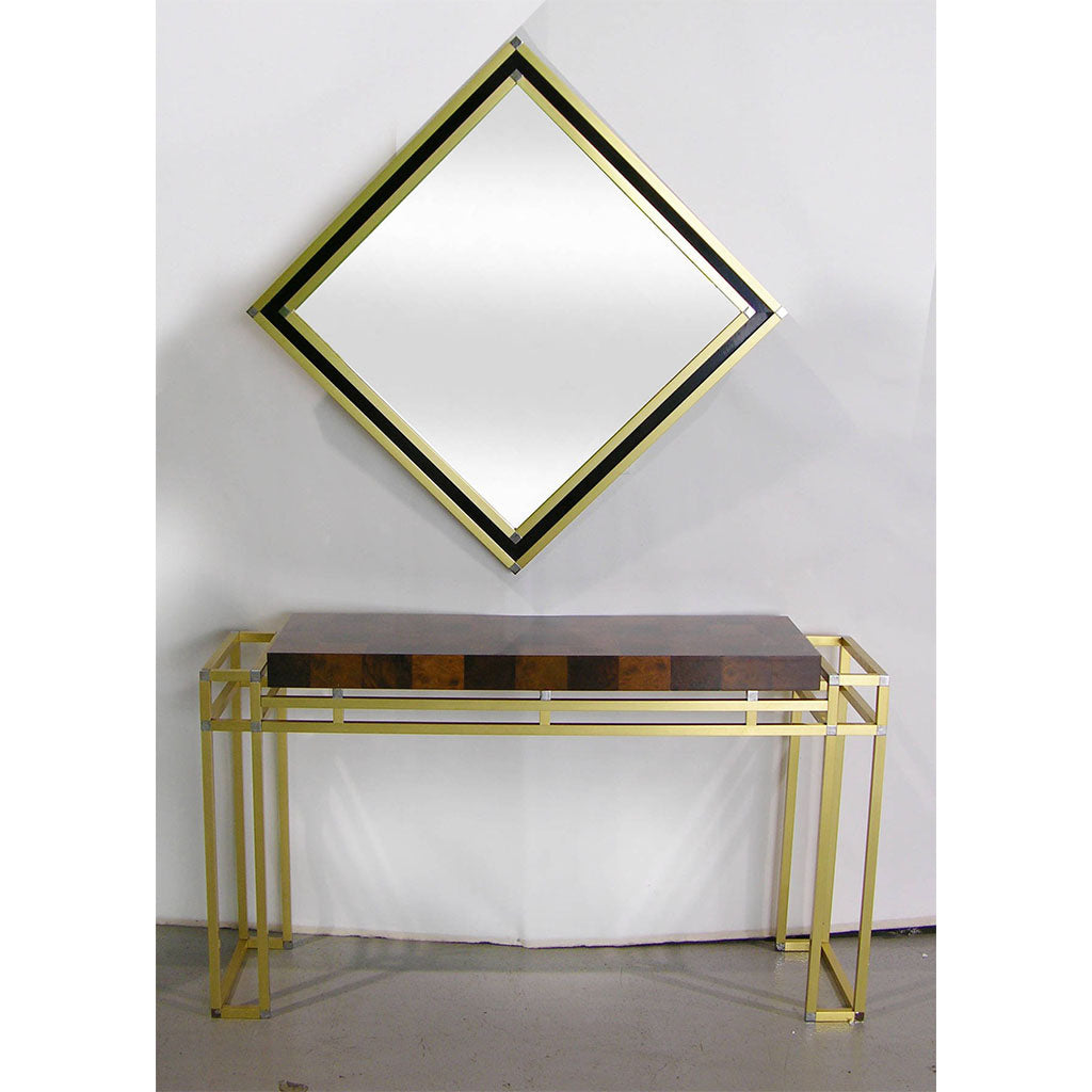 Mario Sabot Italian 1970s Modern Brass and Black Square Wall Mirror