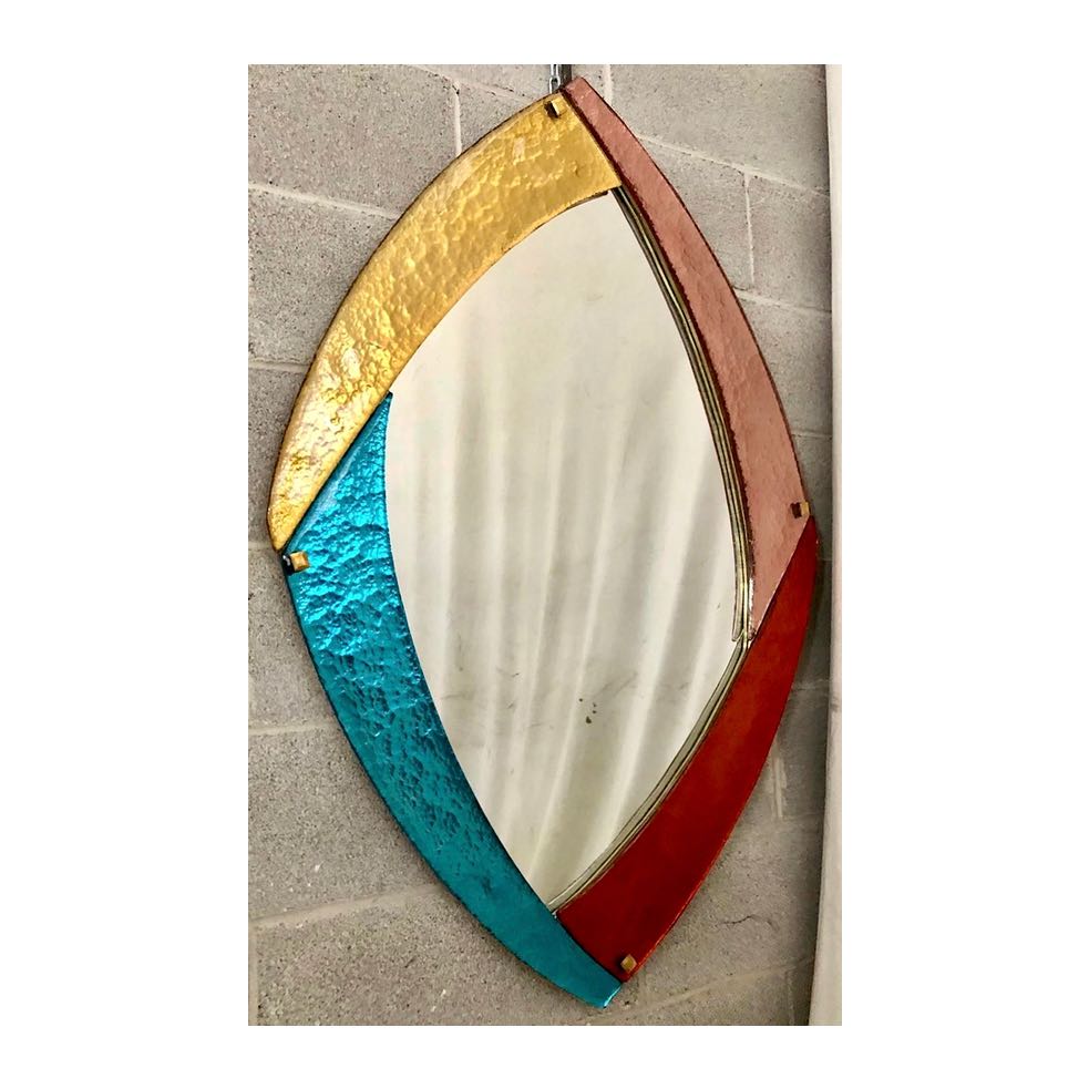Bespoke Italian Memphis Design Gold Pink Turquoise Burgundy Murano Glass Mirror