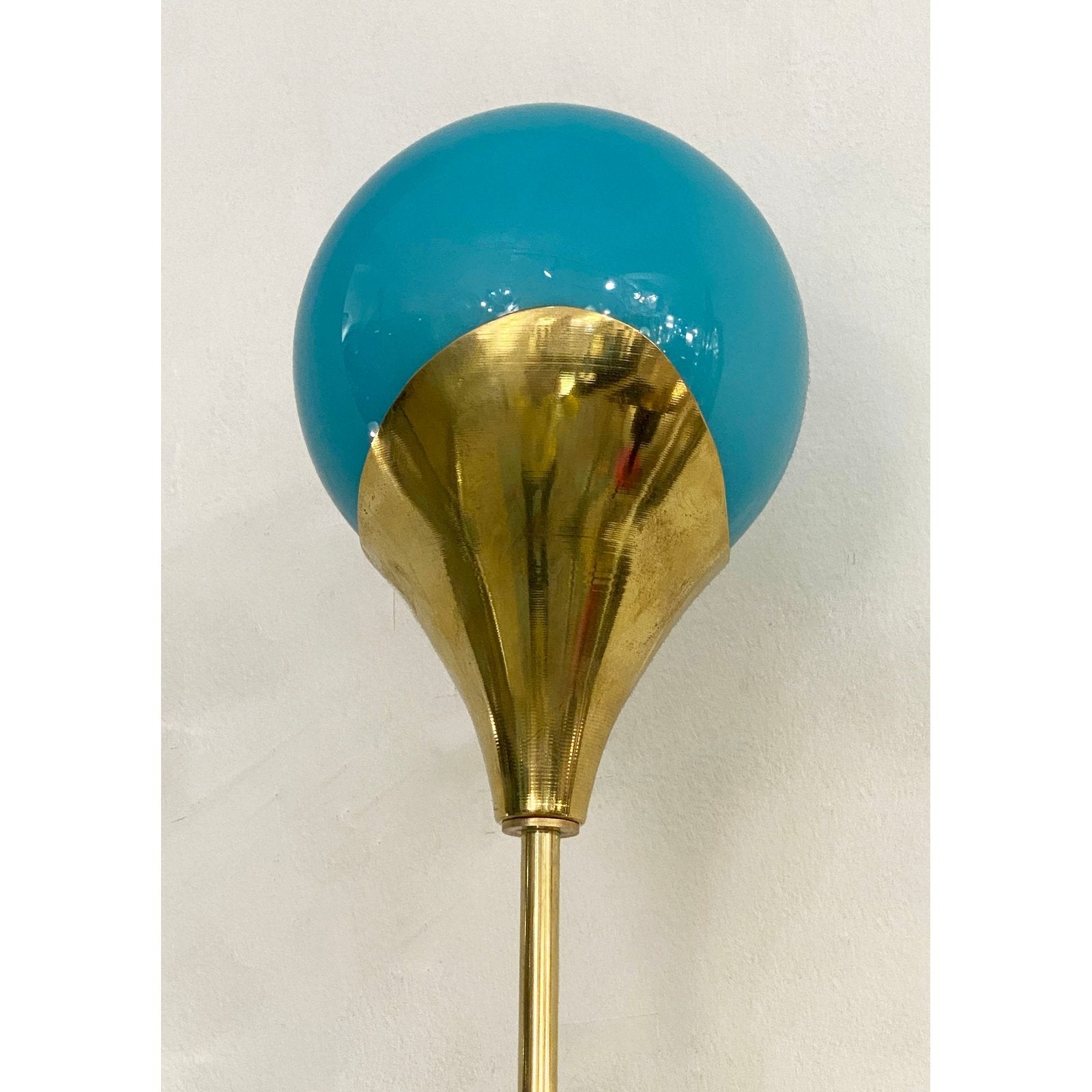 Contemporary Italian Pair of Two Globe Turquoise Murano Glass Brass Sconces