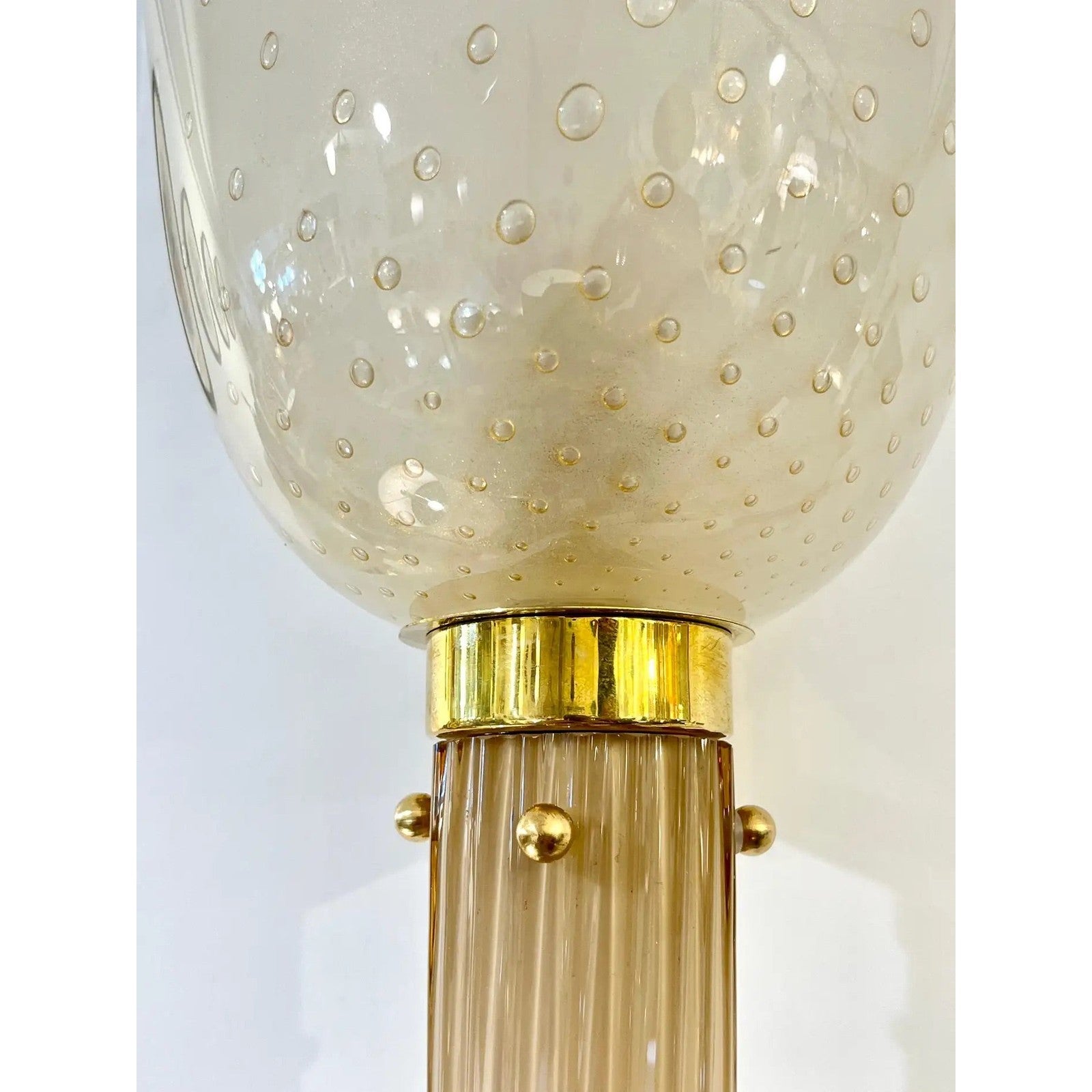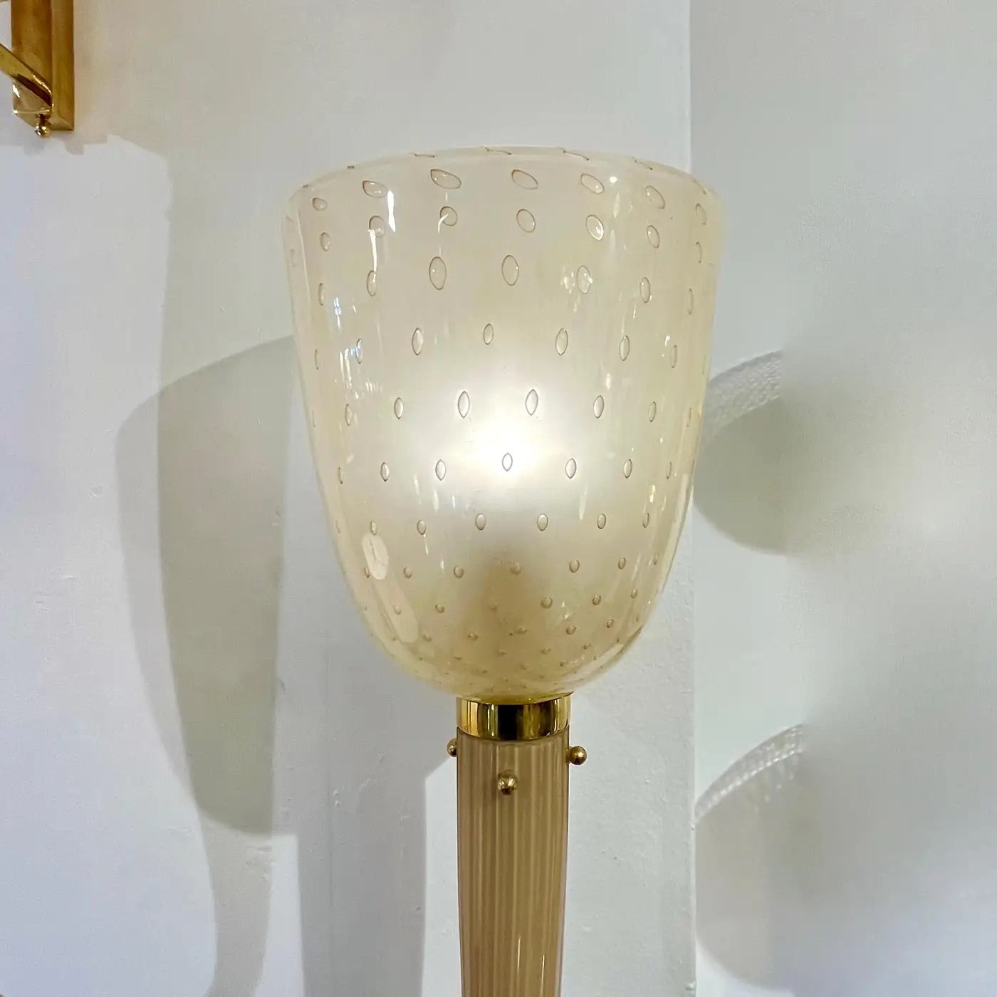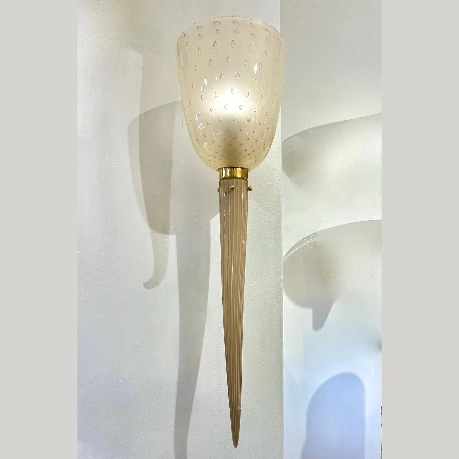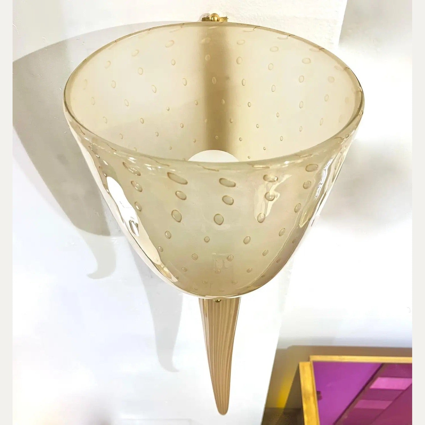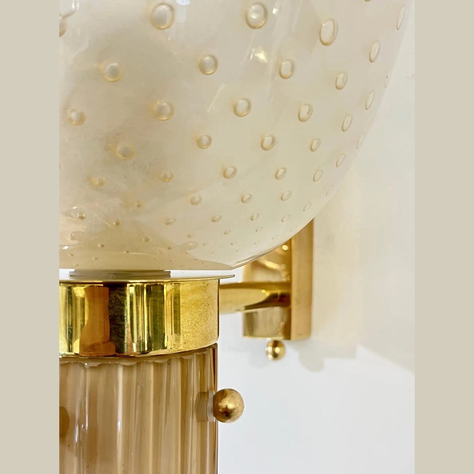 Modern Art Deco Style Beige Gold Frosted White Murano Glass Round Wall Lights