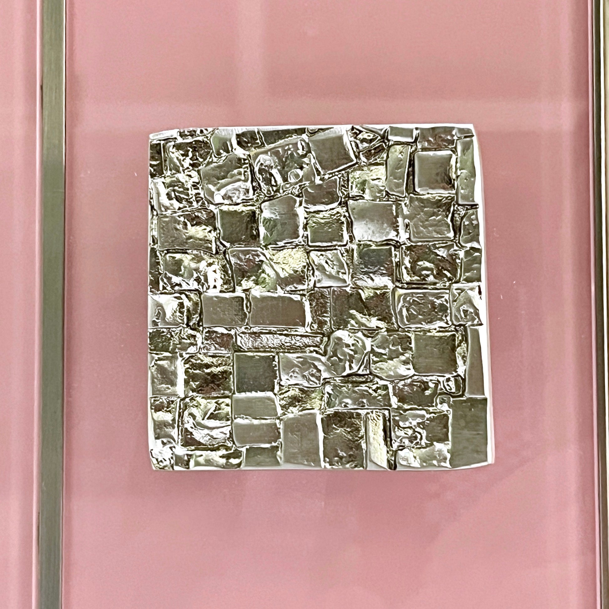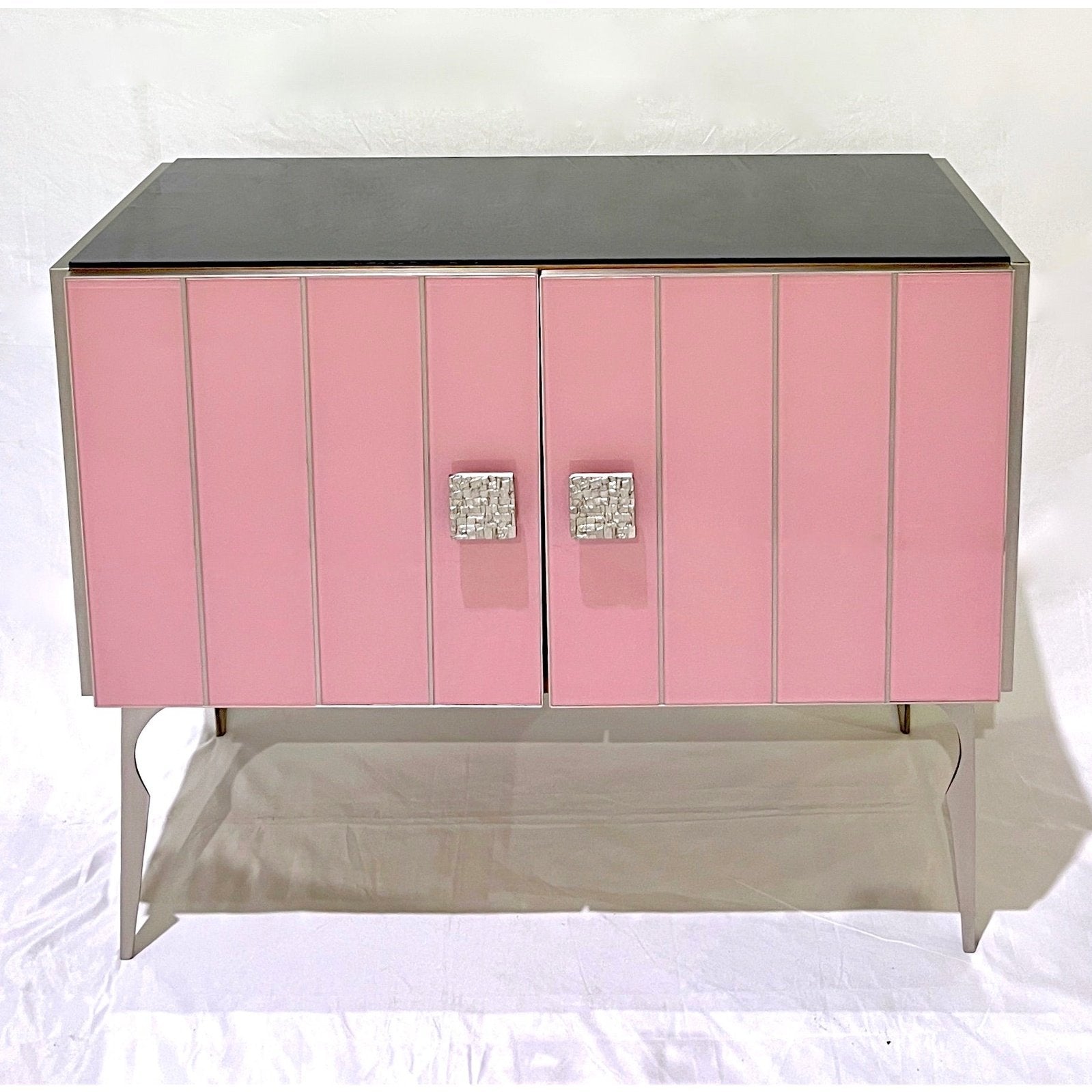 Modern Italian Custom Art Deco Style Pink Black Glass Satin Nickel Cabinet /Bar