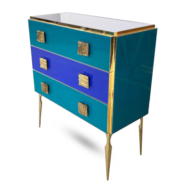 Modern Italian Custom Art Deco Style Royal Pink Glass Brass Edged Cabinet /Bar