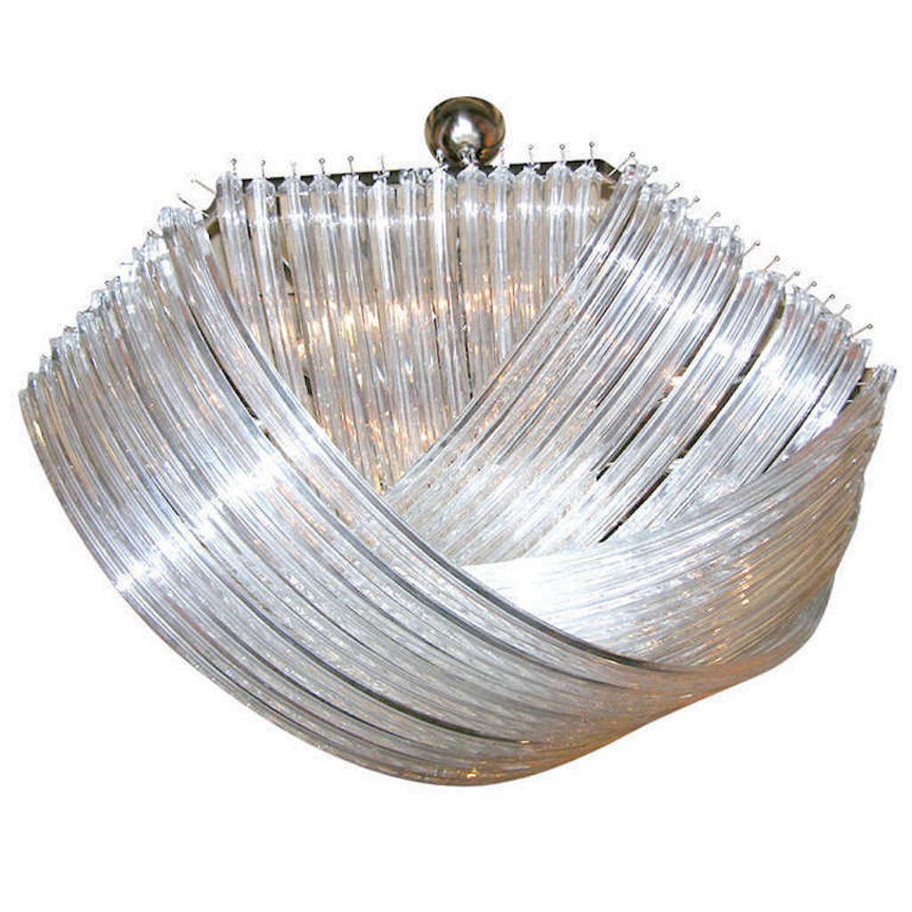 Monumental Italian Minimalist Crystal Clear Murano Glass Curved Chandelier