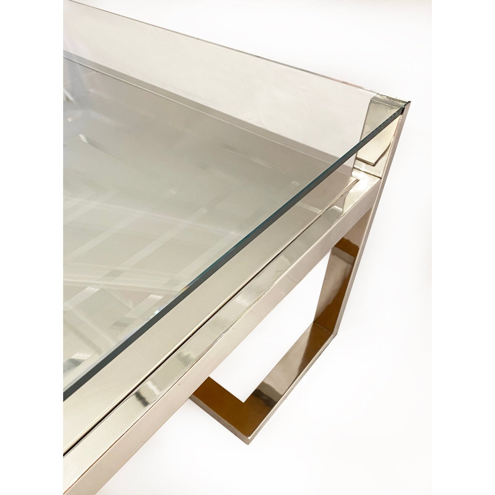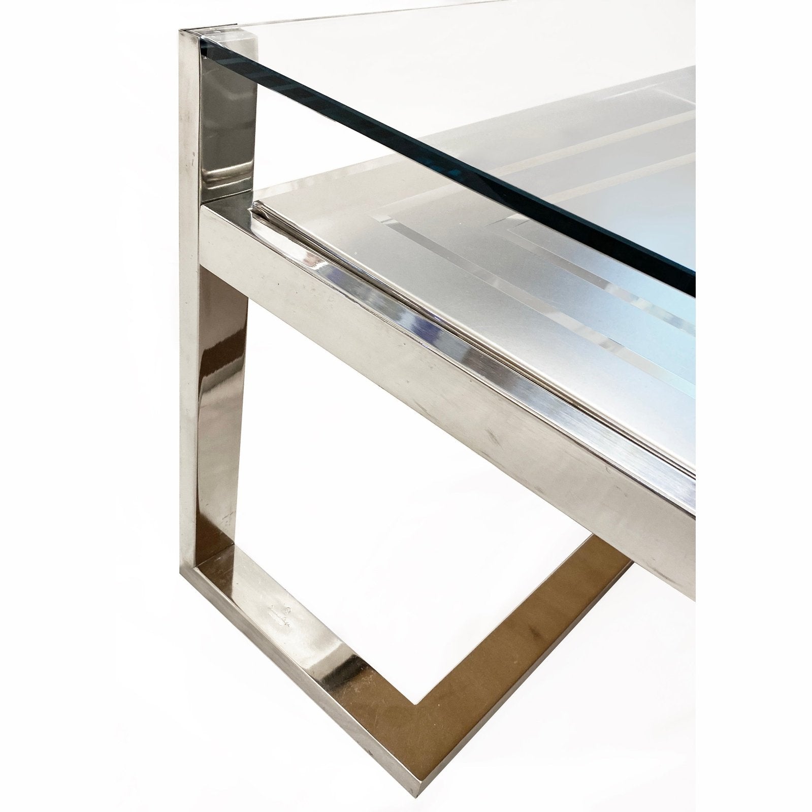 Romeo Rega Italian Geometric Decor Clear Glass Chrome 2 Tier Coffee Sofa Table