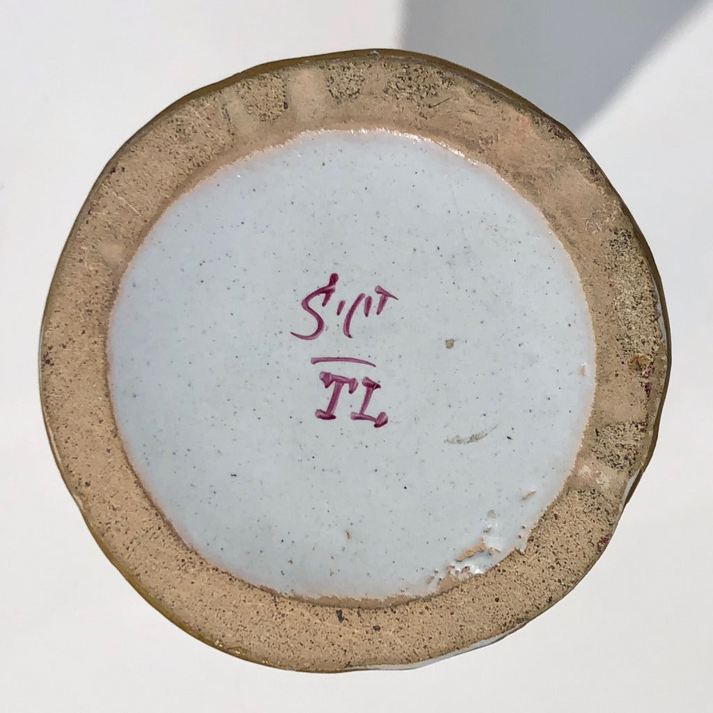1870s St. Clement French Faience Majolica Pair of White Pink Flower Vases