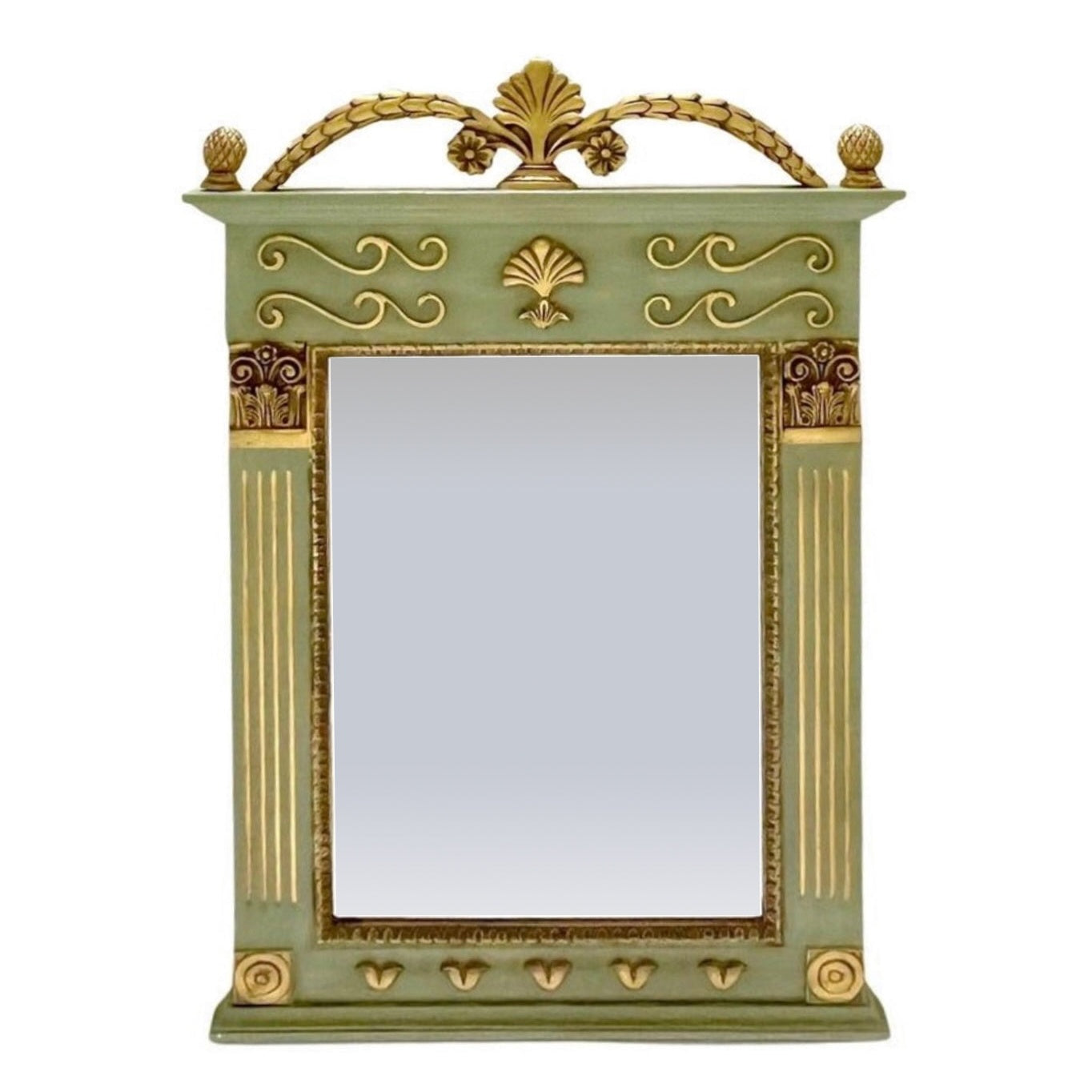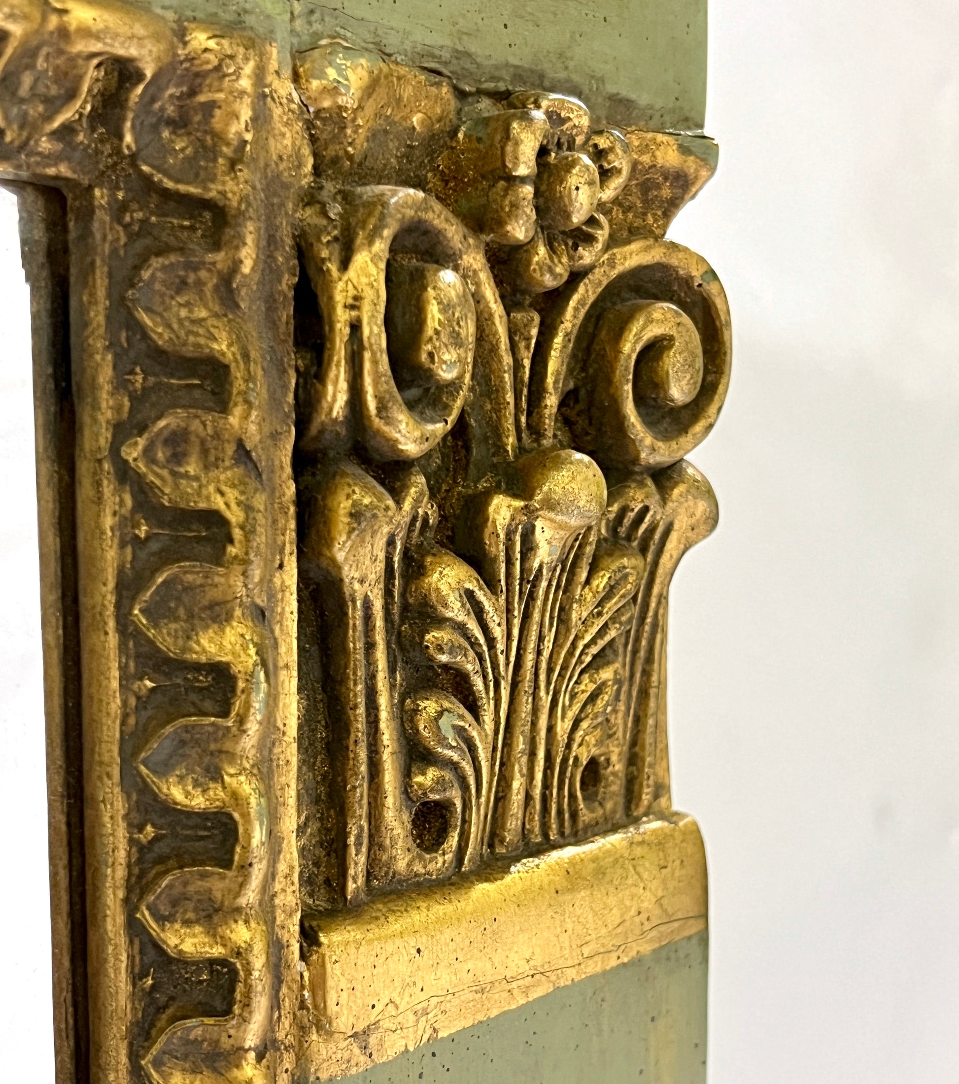 1970s Vintage Provincial French Deco Parcel-Gilt Green Gold Wood Trumeau Mirror