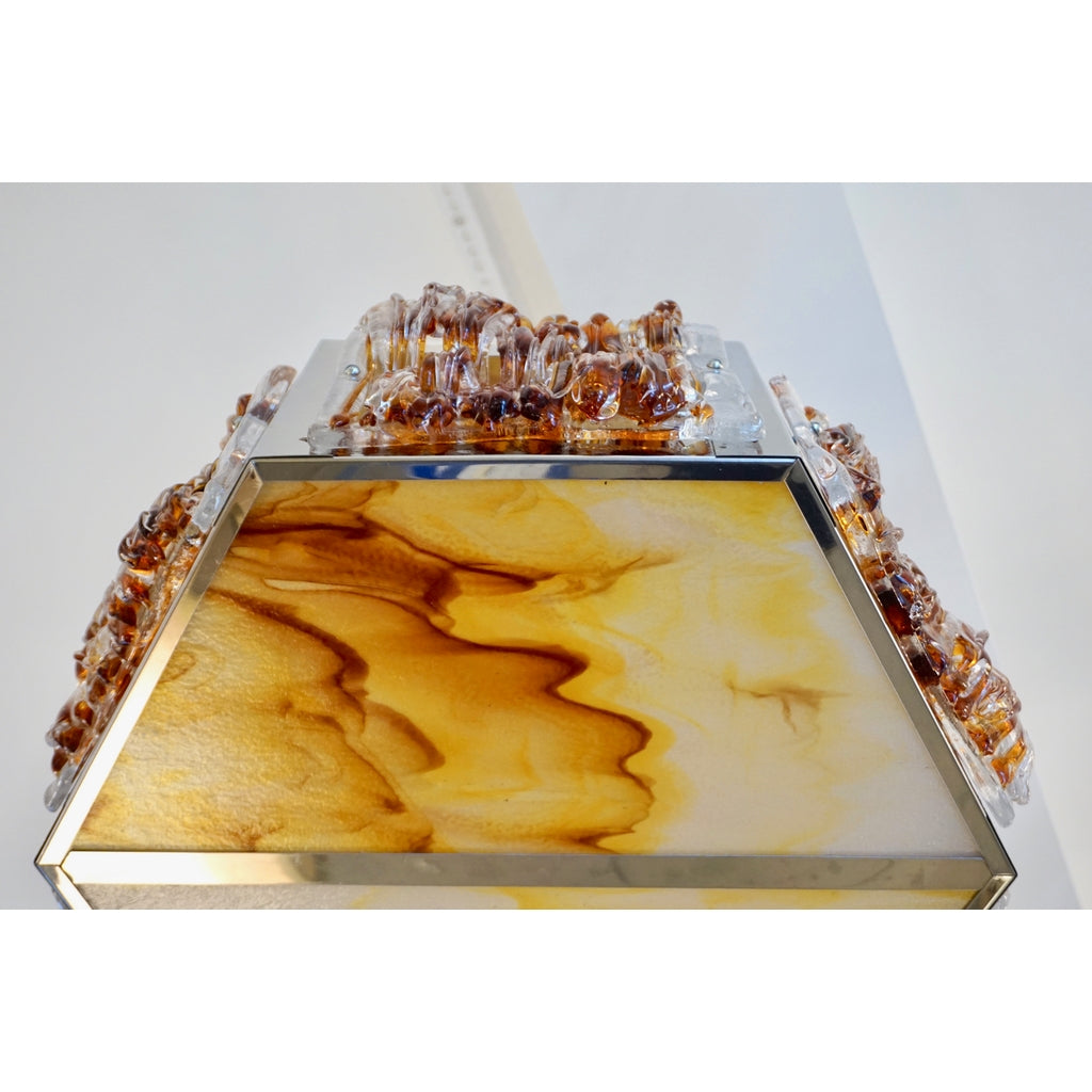 1970 Vintage Italian Mazzega Nickel Crystal Orange Yellow Murano Drum Chandelier
