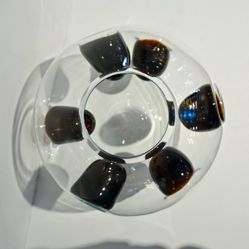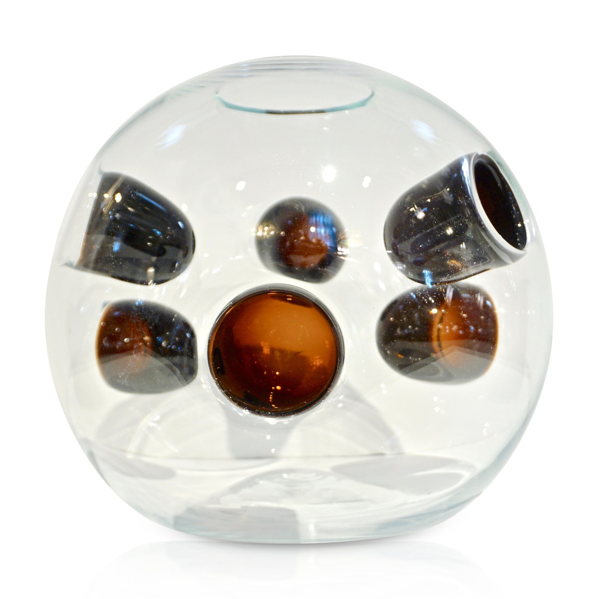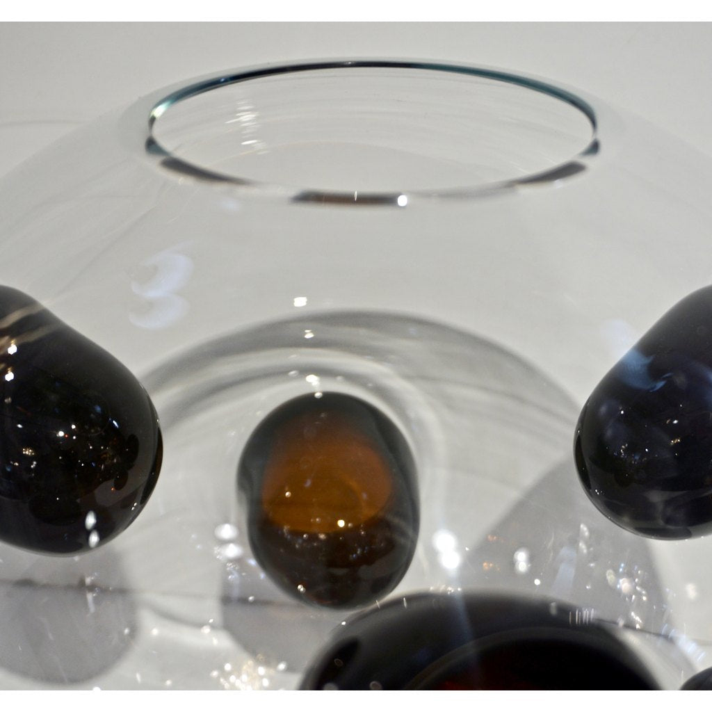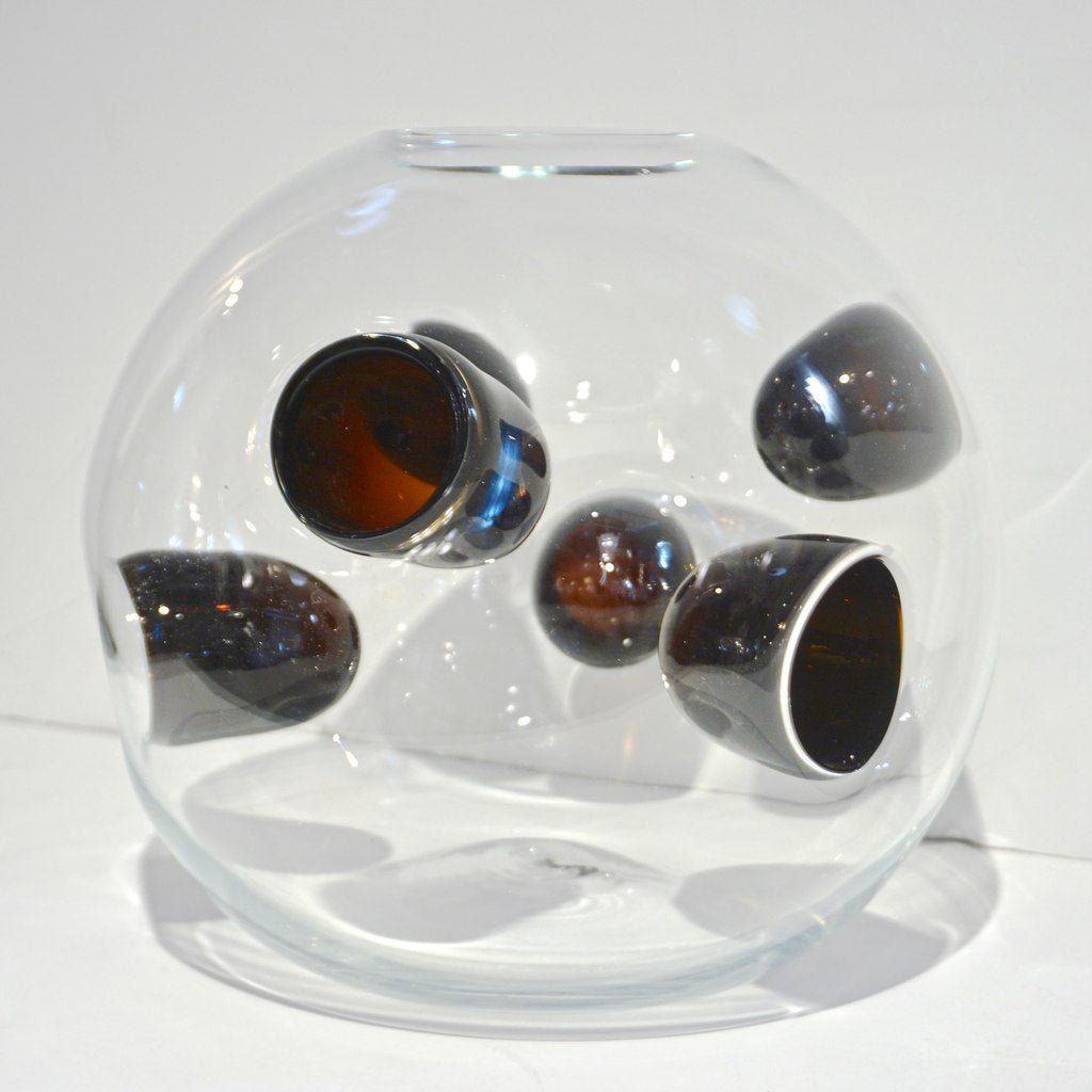 1980s Vistosi Organic Dark Brown Black & Crystal Murano Glass Round Vase