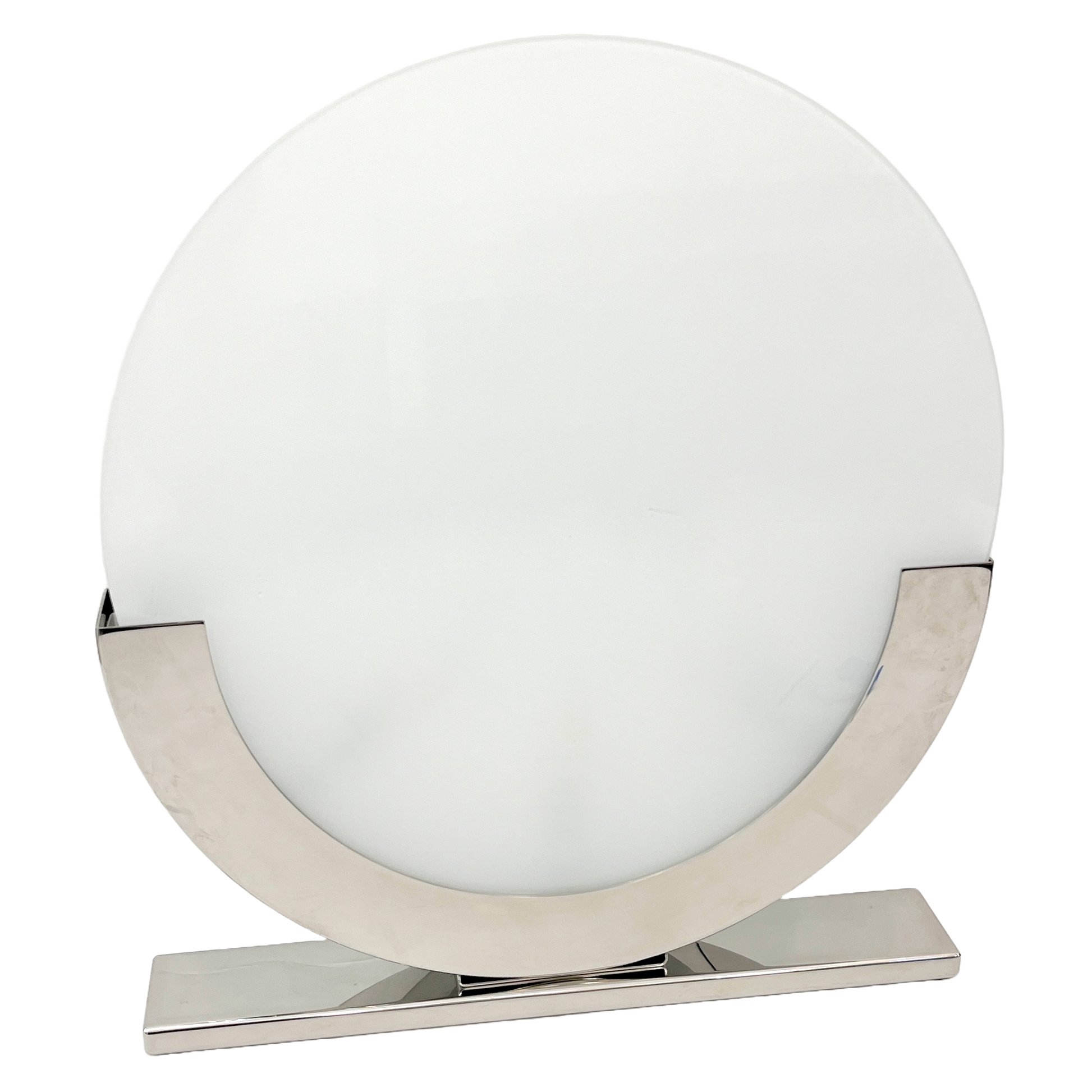 1990 Minimalist Italian Design White and Chrome Round Table Lamp