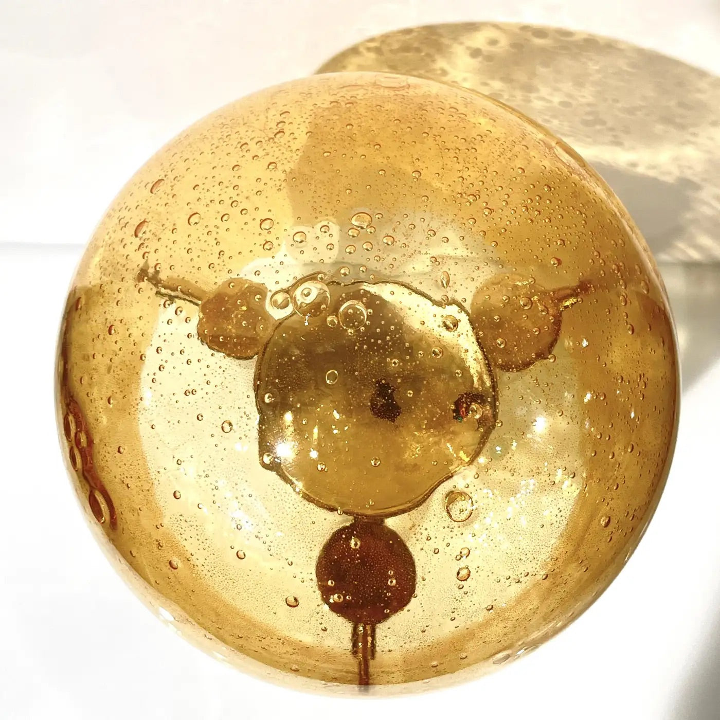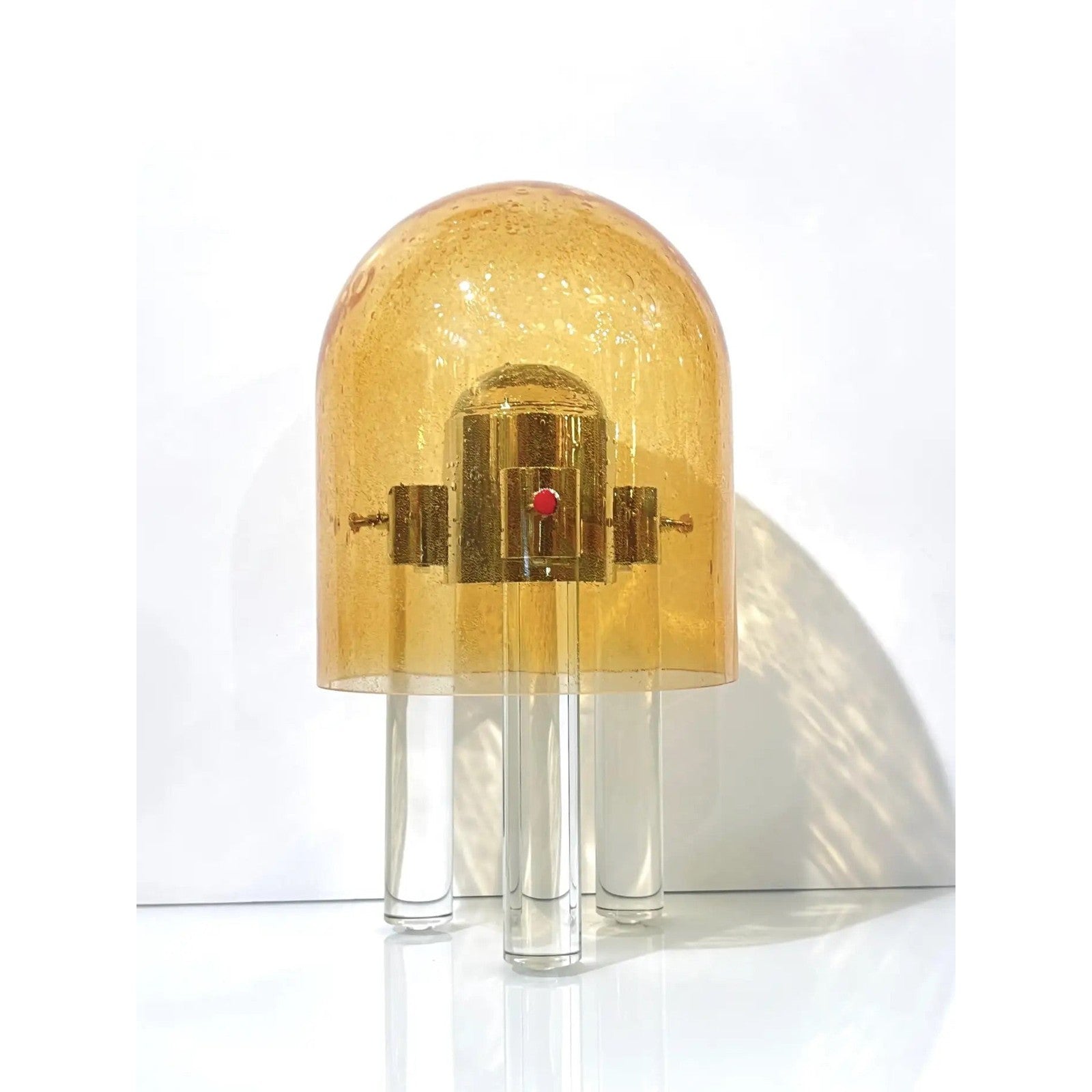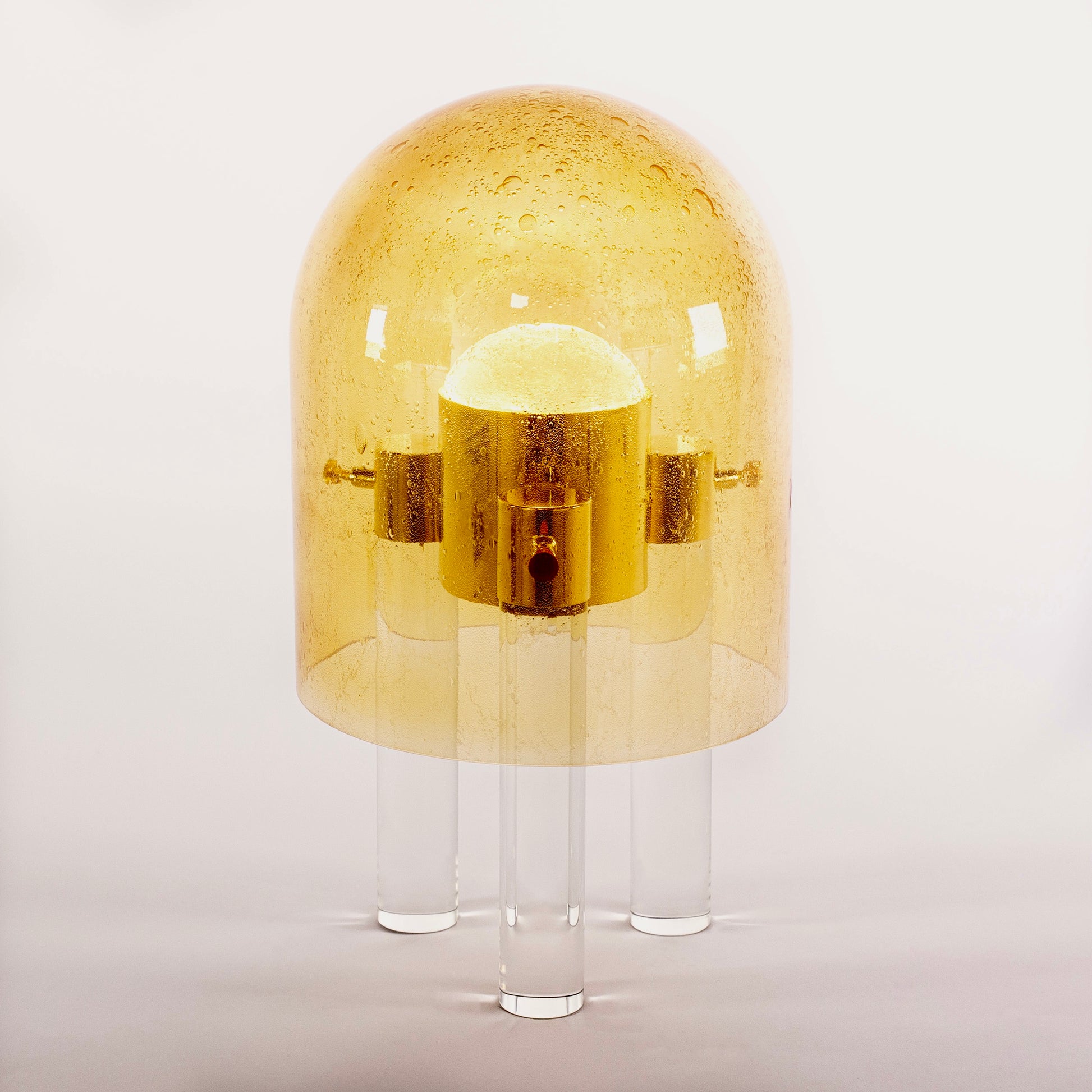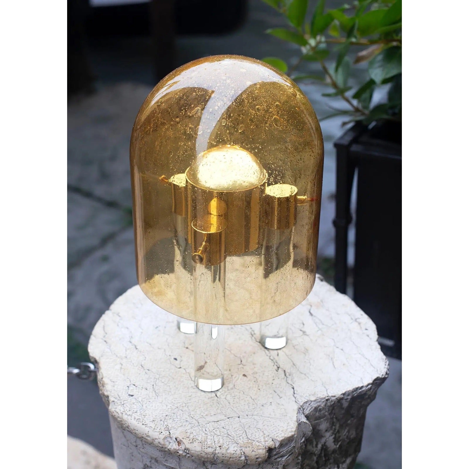 Wireless Italian Dimmable Amber Murano Glass Space Age Gold Brass Table Lamp